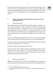 -9- Der gegen die geplante Ausgestaltung der Dokumentationspflicht vorgetragene Protest ist damit vor allem vor dem Hintergrund der seit Jahren vorgetragenen Forderung nach einer generellen Entbürokratisierung und in diesem Zusammenhang mit einer Vielzahl anderer, durch die Weiterentwicklung der GAP hinzugekommenen Regularien zu verstehen. 5. Reduktionsprogramme und Dokumentationsvorschriften in anderen Mitgliedstaaten der EU 5.1. Reduktionsprogramme Neben Deutschland haben 10 Mitgliedsstaaten (Österreich, Belgien, Dänemark, Finn- land, Frankreich, Griechenland, Ungarn, Niederlande, Schweden, Vereinigtes König- reich) Reduktionsprogramme – entsprechend den von der Kommission geforderten 17 Aktionsprogrammen –auf den Weg gebracht . Die Dokumentationspflicht ist ein Teil dieser Programme, wird aber bislang noch in unterschiedlicher Weise ausgelegt. Auch sind in einigen Ländern die entsprechenden Vorschriften bislang noch nicht in Kraft getreten So sieht z.B. Finnland ein breit gefächertes System vor, das in seinen Anforderungen über das novellierte PflSchG hinausgeht, derzeit aber noch in der Erprobungsphase ist. In Frankreich ist die Aufzeichnung nach Bewirtschaftungseinheiten oder nach Schlägen bereits Praxis im Rahmen der „Cross Compliance“. In Belgien wird derzeit ein Monitoring-System entwickelt. In anderen Ländern wird die Fortentwicklung des Dokumentationssystems im Reduk- tionsprogramm nicht eigens erwähnt, sei es, weil bereits einschlägige Vorschriften vor- handen sind, sei es, weil die Ergebnisse des Diskussionsprozesses zur oben erwähnten Statistikverordnung abgewartet werden sollen. 18 5.2. Dokumentationsvorschriften Ähnlich wie in Deutschland liegt in den meisten EU-Mitgliedstaaten die Kompetenz für die Anforderungen an die Dokumentation und die Kontrolle in der Kompetenz der unte- 17 siehe Zusammenstellung (Stand 2006) in der Anlage 18 Aus Zeitgründen konnten nur die über die Internet-Recherche zugänglichen Beispiele dokumentiert werden.