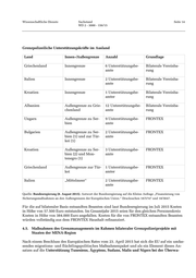 Wissenschaftliche Dienste Sachstand Seite 13 WD 2 - 3000 - 156/15 zisten in Slowenien vorgesehen. Hierbei handelt es sich um eine bilaterale Unterstützungsmaß- nahme der EU, die nicht von FRONTEX koordiniert wird. Die Bundesrepublik hat fünf Beamte der Bundespolizei nach Slowenien entsandt, um die konzeptionelle Vorbereitung des europäi- schen Polizeieinsatzes zu unterstützen. 26 In ihrer Antwort vom 10. August 2015 auf eine Kleine Anfrage der Fraktion die LINKE infor- mierte die Bundesregierung über grenzpolizeiliche Unterstützung innerhalb der EU. Zu diesem 27 Zweck hat die Bundespolizei 38 Polizeivollzugsbeamte als Unterstützungskräfte oder Berater ein- gesetzt (Stand: 27. Juli 2015). 26 Eine ausführliche Darstellung des Engagements der Bundespolizei im Ausland in Bezug auf Grenzmanagement ist in: Bundesregierung (24. August 2015). Antwort der Bundesregierung auf eine Kleine Anfrage der Fraktion DIE LINKE „Polizei- und Zolleinsätze im Ausland (Stand: zweites Quartal 2015).“ Drucksachen 18/5814 und 18/5721. 27 Bundesregierung (8. August 2015). Antwort der Bundesregierung auf die Kleine Anfrage der Fraktion DIE LINKE „Finanzierung von Sicherungsmaßnahmen an den Außengrenzen der Europäischen Union.“ Drucksache 18/5747.