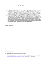 Wissenschaftliche Dienste Sachstand Seite 21 WD 2 - 3000 - 156/15 Das BMZ fördert die Entwicklung einer marokkanischen Willkommenskultur für Migran- ten, Flüchtlinge und rückkehrende Marokkaner durch finanzielle Unterstützung für Sprachkurse, fachliche Weiterbildung oder rechtliche Beratung. Ziel ist es, die Fähigkei- ten der kommunalen Akteure im Sinne interkultureller Zusammenarbeit und konfliktvor- beugender Integrationsarbeit sowie Maßnahmen gegen Rassismus zu verbessern. 53 In Mali stehen im Rahmen der Sonderinitiative der Wiederaufbau von Schulen und Ge- sundheitszentren im Fokus, der die Rückkehrer bei der Reintegration in ihre Heimatregio- nen unterstützen soll. Ziel ist, das friedliche Zusammenleben zwischen Rückkehrern und lokaler Bevölkerung in Nord-Mali zu fördern. Dabei handelt es sich beispielsweise um Projekte, die Grundlagen und Strukturen für eine nachhaltig gewaltfreie Konfliktbearbei- tung schaffen. Auch ehemalige Kindersoldaten werden durch Wiedereingliederung in das Bildungssystem bei der Reintegration in die Gesellschaft begleitet. 54 Ende der Bearbeitung 53 BMZ (Oktober 2015). Sachstand Migrationsdruck verringern. 54 BMZ (2015). Integration und Reintegration von Flüchtlingen und Binnenvertriebenen. Abrufbar unter: https://www.bmz.de/de/was_wir_machen/themen/Sonderinitiative-Fluchtursachen-bekaempfen-Fluechtlinge- reintegrieren/deutsche_politik/aktionsfeld_3/index.html, (letzter Zugriff: 27. Oktober 2015).