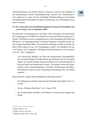 -5- vertrag“ gehörte, der am 5. Mai 1955 in Kraft trat. Mit diesem Vertrag beendeten die 13 drei Westalliierten ihr Besatzungsregime in der Bundesrepublik. Außerdem wurden das Beatzungsstatut aufgehoben und die Alliierte Hohe Kommission sowie die Dienst- 14 stellen der Landeskommissare in der Bundesrepublik aufgelöst. Folgerichtig wurde durch Art. 1 Abs. 2 des Vertrages festgestellt, dass dadurch die Bundesrepublik „die volle Macht eines souveränen Staates über ihre inneren und äußeren Angelegenheiten“ bekam. Allerdings wurde der Bundesrepublik durch den „Deutschlandvertrag“ nicht die 15 vollständige völkerrechtliche Souveränität eingeräumt. So lautete der Art. 2 des Ver- trages: „Im Hinblick auf die internationale Lage, die bisher die Wiedervereinigung Deutschlands und den Abschluß eines Friedensvertrages verhindert hat, behalten die Drei Mächte die bisher von ihnen ausgeübten oder innegehabten Rechte und Verantwortlichkeiten in bezug auf Berlin und auf Deutschland als Ganzes ein- schließlich der Wiedervereinigung Deutschlands und einer friedensvertraglichen Regelung.“ Mit dieser Klausel wollten sich die drei Westalliierten ihre Vorbehaltsrechte bezüglich derjenigen Materien bewahren, die ihnen als besonders wichtig erschienen. Zudem konnten die Westmächte über diese Fragen keinerlei die Bundesrepublik begünstigende Regelungen treffen, da diesbezügliche Entscheidungen von allen vier Siegermächten 16 zusammen – also einschließlich der Sowjetunion – getroffen werden mussten. 1.2.3. Der „Vertrag zur Regelung aus Krieg und Besatzung entstandener Fragen“ (sog. „Überleitungsvertrag“) 17 Ein Teil der „Pariser Verträge“ war neben dem „Deutschlandvertrag“ u.a. auch der sog. „Überleitungsvertrag“. Dieser Vertrag wurde ebenfalls zwischen den drei Westmächten und der Bundesrepublik Deutschland geschlossen. Mit diesem Vertrag wurden ver- schiedene Reglungen hinsichtlich der Bestandskraft von Entscheidungen und Maßnah- men der Westalliierten gegenüber der nach Art. 1 Abs. 2 des „Deutschlandvertrags“ als souverän bezeichneten Bundesrepublik Deutschland getroffen. Vorrangig ging es um die Frage, welche Rechtsakte der Alliierten von der deutschen Staatsgewalt als weder reversibel noch justiziabel akzeptiert werden mussten. Der „Überleitungsvertrag“ ist nicht nur aufgrund der Tatsache, dass er als Teil der „Pariser Verträge“ zeitlich mit dem 13 Art. 1 Abs. 1 des Deutschlandvertrages. 14 Art. 1 Abs. 1 des Deutschlandvertrages. 15 Raap, BayVBl. 1992, S. 11. 16 Rensmann, Besatzungsrecht, S. 54. 17 BGBl. 1955 II, S. 405 ff.