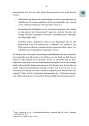 -8- sammenfassend lässt sich das weiter gültige Besatzungsrecht in drei große Bereiche einteilen: - Gültig bleiben alle Rechte und Verpflichtungen, die durch gesetzgeberische, ge- richtliche oder Verwaltungsmaßnahmen der Besatzungsbehörden oder aufgrund solcher Maßnahmen begründet oder festgestellt worden sind. - Ferner bleiben alle Maßnahmen, die für „Zwecke der Reparation oder Restituti- on oder aufgrund des Kriegszustandes“ gegen das „deutsche Auslands- oder sonstige Vermögen durchgeführt worden sind“, einschließlich eines diesbezügli- chen Klagestopps, gültig. - Schließlich bleiben „Maßnahmen, welche von den Regierungen oder mit ihrer Ermächtigung in der Zeit zwischen dem 1. September 1939 und dem 5. Juni 1945 wegen des in Europa bestehenden Kriegszustandes getroffen wurden“, ein- schließlich eines diesbezüglichen Klagestopps, wirksam. Die Tatsache, dass verschiedene Bestimmungen und Maßnahmen der Besatzungsmäch- te bestandskräftig sind, führt nicht zu dem Ergebnis, dass die Bundesrepublik Deutsch- land heute völkerrechtlich nicht vollständig souverän ist. Der Fortbestand des Besat- zungsrechts basiert darauf, dass die Bundesrepublik Deutschland freiwillig eine entspre- chende völkerrechtliche Bindung eingegangen ist. Die Tatsache, dass sich ein Staat ge- genüber anderen Staaten Bindungen auferlegt, ist jedoch kein Beweis für eine nur un- vollständige Souveränität des Staates, sondern im Gegenteil gerade Ausfluß seiner Sou- 24 veränität. Daher sind die fortgeltenden Bestimmungen des „Überleitungsvertrages“ 25 nicht als Beschränkung der Souveränität der Bundesrepublik Deutschland anzusehen. 24 Ipsen, Völkerrecht, § 5 Rn 7; Seidl-Hohenveldern/Stein, Völkerrecht, Rn 638, Geiger, Grundgesetz und Völkerrecht, S.23. 25 Blumenwitz in: HStR IX, § 211 Rn 46.