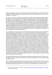 Wissenschaftliche Dienste Ausarbeitung Seite 11 WD 9 – 3000/012-13 Fällen für angemessen hält, kann auf die Festlegung einer Mindestmenge verzichtet werden. Des Weiteren trifft die Regelung über Mindestmengen nicht für die Versorgung von Kindern bis ein- schließlich 17 Jahren zu. In Anlage 2 werden die jeweiligen SE aufgezählt und deren unterschiedliche Behandlungsaufträ- ge erläutert, sowie die sachlichen und personellen Anforderungen für die Behandlung geschil- dert. Weiterhin wird vorgegeben, ob ein Überweisungserfordernis bei dem eingetretenen Krank- heitsfall für die ambulante spezialfachärztliche Versorgung besteht. Alle Behandlungsaufträge bestehen zunächst aus einer ambulanten Diagnostik und der Versorgung der betroffenen Patien- ten. Die vorgegebenen Behandlungsarten variieren je nach Krankheit und werden unterteilt in allgemeine Fragestellungen, allgemeine Diagnostik, Beratungen oder Therapien und in fachspezi- fische Fragestellungen. Im Falle von klinischer Verschlechterung, fortschreitendem Krankheits- verlauf, Komplikationen oder besonderen Fragestellungen können zusätzlich weitere (Spezial-) Untersuchungen notwendig werden. In Einzelfällen können auch Schulungen der Patienten und deren Angehörigen zur Behandlung gehören. Für die sachlichen Anforderungen an die Behandlung SE gelten zunächst immer die Qualitätssi- cherungs-Vereinbarungen gemäß § 135 Abs. 2 SGB V hinsichtlich der Aufrechterhaltung der fachlichen Befähigung, den apparativen, organisatorischen, räumlichen Voraussetzungen und der Überprüfung der Hygienequalität. Demnach müssen Vereinbarungen von Qualifikationsvoraus- 24 setzungen zur Durchführung verschiedener Untersuchungen getroffen werden. Die personellen Anforderungen bestimmen, von wem der Patient betreut werden soll, und welche Fachkräfte er- forderlich sind. Das Betreuungsteam soll in den meisten Krankheitsfällen aus einem interdiszip- linären Team bestehen. Die Leitung und Koordination über das Betreuungsteam übernimmt je- weils ein vorgeschriebener Fachbereich. Neben des Teams können noch weitere Abteilungen im gleichen Krankenhaus zur Behandlung eingebunden und bei medizinischer Notwendigkeit müs- sen zusätzliche Fachärzte hinzugezogen werden. Des Weiteren müssen bestimmte Fachbereiche oder der jeweilige Teamleiter (ständig) verfügbar sein. Gegebenenfalls ist sogar eine 24-stündige Notfallversorgung vorgeschrieben. Darüber hinaus werden bestimmte Qualifikationsanforderun- gen an das Behandlungsteam gestellt, die weitgehend aus ausreichender Erfahrung in der speziel- len Behandlung bestehen. Das Team ist zudem zur Dokumentation und Auswertung und zu einer leitlinienorientierten Behandlung verpflichtet. Es werden ebenfalls Anforderungen an die Tech- nik und Räumlichkeiten gestellt, wie beispielsweise eine räumliche Trennung von Patienten mit verschiedenen Keimbesiedlungen oder behindertengerechte Räumlichkeiten. Falls die jeweilige Krankheit auch Kinder in einem hohen Maße betrifft, werden unterschiedliche Behandlungen für Kinder und Erwachsene konkretisiert. Bei einigen SE können neben der Behandlung Sozialdienste einbezogen werden. Teilweise soll den Patienten unter weiteren Voraussetzungen auch die Teilnahme an (inter-)nationalen Studien ermöglicht werden. Bei der ambulanten spezialärztlichen Versorgung gemäß § 116 b SGB V handelt es sich um einen Selektivvertrag. Selektivverträge können zwischen einzelnen Krankenkassen und einzelnen Leis- tungserbringen abgeschlossen werden, von denen die kassenärztlichen Vereinigungen ausge- 24 Die aktuelle Fassung des § 135 SGB V ist eingestellt auf: http://www.gesetze-im-internet.de/sgb_5/__135.html (Stand 14. Februar 2013).