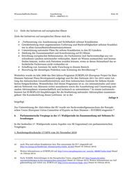 Wissenschaftliche Dienste Ausarbeitung Seite 18 WD 9 – 3000/012-13 5.2. Ziele der Initiativen auf europäischer Ebene Ziele der Initiativen auf europäischer Ebene sind die „Verbesserung von Anerkennung und Sichtbarkeit seltener Krankheiten Gewährleistung einer angemessenen Codierung und Rückverfolgbarkeit seltener Krankhei- ten in allen Gesundheitsinformationssystemen Unterstützung nationaler Pläne für seltene Krankheiten in den EU-Ländern Stärkung der Zusammenarbeit und Koordinierung auf EU-Ebene Errichtung europäischer Referenznetze, die Fachzentren und Sachverständige aus ver- schiedenen Ländern miteinander verknüpfen, damit sie Wissen austauschen und heraus- finden können, wohin sich Patienten wenden können, wenn in ihrem Heimatland das er- forderliche Fachwissen nicht vorhanden ist Schaffung von Anreizen für mehr Forschung in diesem Bereich Bewertung der derzeitigen Praktiken zum Screening der Bevölkerung“ 43 Weiterhin wurde im Jahr 2008 das Drei-Jahres-Programm EUROPLAN (European Project for Rare Diseases National Plans Development) aufgelegt und für den Zeitraum 2011 bis 2015 unter Lei- tung des italienischen Gesundheitsinstituts und dem italienischen Zentrum für Seltene Krank- heiten fortgeschrieben. Wesentliches Ziel dieses Programms ist es, ein internationales und inter- aktives Netzwerk von Akteuren weiter auszubauen sowie die Ausarbeitung und Umsetzung nati- onalen Aktionsplänen wissenschaftlich und technisch zu unterstützen. In einem Leiliniendo- 44 kument hat EUROPLAN Empfehlungen für die Erarbeitung nationaler Aktionspläne zusammen- gefasst. Die Kurzdarstellung dieser Leitlinien ist in der Anlage 4 beigefügt. Zur Unterstützung der Aktivitäten der EU wurde ein Sachverständigenausschuss der Europäi- schen Union (European Union Committee of Experts on Rare Diseases – EUCERD) eingesetzt. 45 6. Parlamentarische Vorgänge in der 17. Wahlperiode im Zusammenhang mit Seltenen Er- krankungen In der laufenden 17. Wahlperiode waren Aspekte von SE Gegenstand von parlamentarischen Vorgängen: 1. Bundestagsdrucksache 17/3976 vom 29. November 2010 43 nach: Was sind seltene Krankheiten, hier: Was unternimmt die EU?, eingestellt auf: http://ec.europa.eu/health/rare_diseases/policy/index_de.htm (Stand 19. Februar 2013). 44 Weitere Informationen zu EUROPLAN auf: http://www.europlanproject.eu/_newsite_986987/index.html (Stand 18. Februar 2013). 45 Nach: NAMSE, Entwicklungen in der Europäischen Union, eingestellt auf: http://namse.de/ueber- uns/entwicklungen-in-der-europaeischen-union.html (Stand 18. Februar 2013). Weitere Informationen zur Auf- gabenstellung und Arbeit von EURCD auf: http://www.eucerd.eu/?page_id=2 (Stand 18. Februar 2013).