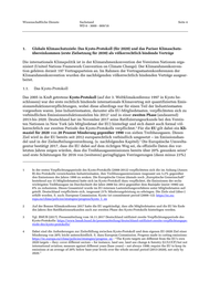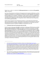Wissenschaftliche Dienste Sachstand Seite 4 WD 8 - 3000 - 009/18 1. Globale Klimaschutzziele: Das Kyoto-Protokoll (für 2020) und das Pariser Klimaschutz- übereinkommen (erste Zielsetzung für 2030) als völkerrechtlich bindende Verträge Die internationale Klimapolitik ist in der Klimarahmenkonvention der Vereinten Nationen orga- nisiert (United Nations Framework Convention on Climate Change). Der Klimarahmenkonven- tion gehören derzeit 197 Vertragsparteien an. Im Rahmen der Vertragsstaatenkonferenzen der Klimarahmenkonvention wurden die nachfolgenden völkerrechtlich bindenden Verträge ausgear- beitet. 1.1. Das Kyoto-Protokoll Das 2005 in Kraft getretene Kyoto-Protokoll (auf der 3. Weltklimakonferenz 1997 in Kyoto be- schlossen) war der erste rechtlich bindende internationale Klimavertrag mit quantifizierten Emis- sionsreduktionsverpflichtungen, wobei diese allerdings nur für einen Teil der Industriestaaten vorgesehen waren. Jene Industriestaaten, darunter alle EU-Mitgliedstaaten, verpflichteten sich zu verbindlichen Emissionsreduktionszielen bis 2012 und in einer zweiten Phase (andauernd) 1 2013-bis 2020. Deutschland hat im November 2017 seine Ratifizierungsurkunde bei den Verein- ten Nationen in New York (als Mitgliedstaat der EU) hinterlegt und sich damit auch formal völ- kerrechtlich zur zweiten Periode des Kyoto-Protokolls verpflichtet. Für die EU gilt dabei ein Kli- 2 maziel für 2020 von 20 Prozent Minderung gegenüber 1990 von sieben Treibhausgasen. Dieses Ziel wird in der EU bereits seit 2012 europarechtlich verbindlich umgesetzt – im Emissionshan- del und in der Zielaufteilungsverordnung. (s. nachfolgendes Kapitel). Die Europäische Umwelta- 3 gentur bestätigt 2017, dass die EU dabei auf dem richtigen Weg sei, da offizielle Daten des vor- letzten Jahres zeigen würden, dass die Treibhausgasemissionen bereits über 20% gesunken seien 4 und erste Schätzungen für 2016 von (weiteren) geringfügigen Verringerungen (dann minus 23%) 1 In der ersten Verpflichtungsperiode des Kyoto-Protokolls (2008-2012) verpflichteten sich die im Anhang (Annex B) des Protokolls verzeichneten Industriestaaten, ihre Treibhausgasemissionen insgesamt um 5,2% gegenüber den Emissionen des Jahres 1990 zu senken. Die Europäische Union (damals noch „Europäische Gemeinschaft“ bestehend aus 15 Mitgliedstaaten) hatte sich im Kyoto-Protokoll dazu verpflichtet, die Emissionen der sechs wichtigsten Treibhausgase im Durchschnitt der Jahre 2008 bis 2012 gegenüber dem Basisjahr (meist 1990) um 8% zu reduzieren. Dieses Gesamtziel wurde im EU-internen Lastenteilungsverfahren unter Mitgliedstaaten auf- geteilt. Deutschland verpflichtete sich, insgesamt 21% Minderungsleistung zu erbringen. Die Ziele sind (über-) erfüllt worden. S. auch: European Commission. Kyoto 1st commitment period (2008–12): https://ec.eu- ropa.eu/clima/policies/strategies/progress/kyoto_1_en 2 Auf der Bonner Klimakonferenz 2017 hatte die EU angekündigt, dass alle Mitgliedstaaten und die EU bis Ende des Jahres ihre Ratifikationsurkunden auch zur zweiten Phase des Kyoto-Protokolls hinterlegen werden. 3 Vgl. BMUB (2017). Pressemitteilung vom 16.11.2017 Deutschland ratifiziert zweite Verpflichtungsperiode des Kyoto-Protokolls: https://www.bmub.bund.de/pressemitteilung/deutschland-ratifiziert-zweite-verpflichtungspe- riode-des-kyoto-protokolls/ 4 Dabei sind die Anforderungen zur Zielerfüllung zwischen Kyoto-Protokoll und dem eigenen EU-2020 Ziel einer Minderung von 20% leicht unterschiedlich. S. dazu European Commission. Progress made in cutting emissions: https://ec.europa.eu/clima/policies/strategies/progress_en : “The Kyoto targets are different from the EU's own 2020 targets – they: cover different sectors – for instance, land use, land use change & forestry (LULUCF) but not international aviation; measure against different years (base years) – not always 1990; require the EU to keep its emissions at an average of 20% below base-year levels over the whole second period (2013-2020), not only by 2020.”