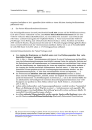 Wissenschaftliche Dienste Sachstand Seite 5 WD 8 - 3000 - 009/18 ausgehen (nachdem es 2015 gegenüber 2014 wieder zu einem leichten Anstieg der Emissionen gekommen war). 5 1.2. Das Pariser Klimaschutzübereinkommen Ein Nachfolgeabkommen für das Kyoto-Protokoll nach 2020 konnte auf der Weltklimakonferenz Ende 2015 in Paris verhandelt werden. Das Pariser Klimaschutzübereinkommen ist das erste weltweit wirksame Klimaschutzabkommen, da sich neben allen Industrie- auch erstmals alle Schwellen- und Entwicklungsländer verpflichtet haben, in Form einzureichender Selbstver- pflichtungen einen Beitrag zum internationalen Klimaschutz zu leisten. Nachdem bis Oktober 2016 bereits 55 Staaten, die gemeinsam für mehr als 55 Prozent der gegenwärtigen globalen Emis- sionen verantwortlich sind, das Übereinkommen ratifiziert hatten, trat es am 4. November 2016 in Kraft. Mit Stand 15.1.2018 haben es 173 Vertragsparteien ratifiziert. Zentrale Klimaschutzziele des Pariser Vertrages sind: • den Anstieg der Erwärmung auf deutlich unter zwei Grad Celsius gegenüber dem vorin- dustriellen Niveau zu begrenzen, (Art. 2 Abs. 1: „Dieses Übereinkommen zielt darauf ab, durch Verbesserung der Durchfüh- rung des Rahmenübereinkommens einschließlich seines Zieles die weltweite Reaktion auf die Bedrohung durch Klimaänderungen im Zusammenhang mit nachhaltiger Entwicklung und den Bemühungen zur Beseitigung der Armut zu verstärken, indem unter anderem a) der Anstieg der durchschnittlichen Erdtemperatur deutlich unter 2 °C über dem vorin- dustriellen Niveau gehalten wird und Anstrengungen unternommen werden, um den Temperaturanstieg auf 1,5 C über dem vorindustriellen Niveau zu begrenzen, …“.) • die Weltwirtschaft zwischen 2050 und 2100 treibhausgasneutral werden zu lassen, (Dazu sind die Vertragsparteien „bestrebt, sobald wie möglich den weltweiten Scheitel- punkt der Emissionen von Treibhausgasen zu erreichen, […] um in der zweiten Hälfte die- ses Jahrhunderts ein Gleichgewicht zwischen den anthropogenen Emissionen von Treib- hausgasen aus Quellen und dem Abbau solcher Gase durch Senken […] herzustellen“ (Art. 4 Abs. 1), • zudem sollen insbesondere auch Anpassungsmaßnahmen verstärkt werden, Finanzmittel- flüsse „in Einklang mit einem Weg hin zu einer […] emissionsarmen und gegenüber Kli- maänderungen widerstandsfähigen Entwicklung“ gebracht werden und ärmere Länder (fi- nanzielle) Unterstützungsleistungen erhalten, • jeweilige nationale Klimaschutzziele werden von den Staaten selbst bestimmt, dazu müs- sen die Staaten nationale Klimaschutzbeiträge (Nationally Determined Contributions; 5 Vgl. European Environment Agency (2017). Trends and projections in Europe 2017. EEA Report No 17/2017. Tracking progress towards Europe's climate and energy targets: 9:: https://www.eea.europa.eu/themes/cli- mate/trends-and-projections-in-europe/trends-and-projections-in-europe-2017, S. zu den genauen Emmis- sionsdaten: 9, 15, Kapitel 2.
