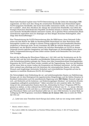 Wissenschaftliche Dienste Sachstand Seite 7 WD 2 - 3000 - 031/16 Damit hatte Russland explizit einer NATO-Osterweiterung um das Gebiet der ehemaligen DDR zugestimmt, auf dem nach dem Abzug der sowjetischen Streitkräfte (nur) Deutschland eigene NATO-assignierte Streitkräfte, aber keine Kernwaffen stationieren durfte, wie Absatz 3 des Arti- kel 5 ausführt: „Nach dem Abschluss des Abzugs der sowjetischen Streitkräfte vom Gebiet der heutigen Deutschen Demokratischen Republik und Berlins können in diesem Teil Deutschlands auch deutsche Streitkräfteverbände stationiert werden, die in gleicher Weise militärischen Bünd- nisstrukturen zugeordnet sind wie diejenigen auf dem übrigen deutschen Hoheitsgebiet, aller- dings ohne Kernwaffenträger.“ 9 Eine Thematisierung der NATO-Osterweiterung über die DDR hinaus, deren Nationale Volks- armee mit dem Beitritt der DDR zur Bundesrepublik Deutschland aus dem Warschauer Pakt herausgelöst worden war, erfolgte in diesem Vertrag aufgrund der noch bestehenden Bündnis- strukturen in Osteuropa nicht. Da mit Ausnahme der DDR das östliche Bündnis noch weiter fortbestand, war der Beitritt weiterer Staaten der östlichen Hemisphäre zur NATO zu diesem Zeitpunkt jenseits jeglicher Imagination und daher Regelungen zur Rechtmäßigkeit einer dauer- haften Truppenstationierung auf dem Gebiet solcher Länder nicht Bestandteil des Zwei-plus- Vier-Vertrages. Erst mit der Auflösung des Warschauer Paktes am 1. Juli 1991 und der Sowjetunion am 26. De- zember 1991 und den sich daraufhin anschließenden Diskussionen über eine künftige europäi- sche Sicherheitsarchitektur gelangte das Thema einer über Gesamtdeutschland hinausgehenden Expansion der NATO nach Osten wieder verstärkt auf die Tagesordnung. Zwar war das Bündnis auf der einen Seite an einem Ausbau der Kooperation mit Russland interessiert. Auf der anderen Seite verstand man allerdings auch die Interessen der osteuropäischen Staaten, die mit dem Wunsch nach langfristiger territorialer Sicherheit und wirtschaftlicher Prosperität auf eine In- tegration in westliche Strukturen (NATO, EU) drängten 10 Die Notwendigkeit einer Einbindung der ost- und mitteleuropäischen Staaten zur Stabilisierung Europas sah vor dem Hintergrund des jugoslawischen Bürgerkrieges und der labilen Situation in Russland insbesondere auch die amerikanische Regierung unter Bill Clinton. Dennoch zeigte sie sich „mit Rücksicht auf die Isolations- und Einkreisungsängste Moskaus“ mit konkreten Erweite- rungsplänen anfänglich zurückhaltend. Daher entschied sie sich zunächst dafür, die Verbin- 11 dung mit den osteuropäischen Staaten durch das „Partnership for Peace“-Programm (PfP-Pro- gramm) zu stärken, zu dem während des NATO-Gipfels in Brüssel vom 10 – 11. Januar 1994 der Startschuss gegeben wurde und dem u.a. zahlreiche Staaten aus dem Vertragsgebiet des ehemali- gen Warschauer Paktes und auch Russland selbst (am 22. Juni 1994) beitraten. In seiner Rede zur Auflegung des PfP-Programms versicherte Clinton am 10. Januar 1994, dass es nicht der Wille der USA sei „[…] jetzt eine neue Trennlinie durch Europa [zu] ziehen, halt nur ein wenig weiter östlich“, 9 Ebenda, Artikel 5, Absatz 3. 10 Roy, Ludovic (2008): Die Außenpolitik von Präsident William Jefferson Clinton. S. 389. LIT Verlag Münster. 11 Ebenda, S. 390.