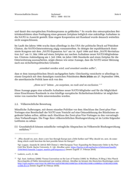 Wissenschaftliche Dienste Sachstand Seite 8 WD 2 - 3000 - 031/16 und damit den europäischen Friedensprozess zu gefährden. So wurde den osteuropäischen Bei- 12 trittskandidaten ohne Festlegung eines genauen Zeitplans lediglich eine zukünftige Aufnahme in die NATO in Aussicht gestellt. Eine engere Kooperation mit Russland wurde dennoch weiterhin nicht ausgeschlossen. Im Laufe des Jahres 1994 wuchs dann allerdings in den USA der politische Druck auf Präsident Clinton, die NATO-Osterweiterung zügig voranzutreiben. So drängte der republikanisch domi- nierte Kongress mit dem „NATO Expansion Act“ am 14. April 1994 und dem „NATO Revitaliza- tion Act“ am 11. Mai 1994 auf einen Zeitplan zur raschen Aufnahme neuer NATO-Mitgliedstaa- ten. Clintons Ankündigung am 1. Juli 1994, im Jahre 1995 Standards und einen Zeitplan für die Osterweiterung auszuarbeiten, zeigte ebenso wie seine Aussage, dass die NATO seiner Meinung nach aus sicherheitspolitischen Gründen „erweitert werden wird, und erweitert werden sollte“, dass er dem innenpolitischen Druck nachgegeben hatte. Gleichzeitig versicherte er allerdings in einem Gespräch mit dem damaligen russischen Präsidenten Boris Jelzin am 27. September 1994, die amerikanische Politik lasse sich von den „three no’s“ leiten: „no surprises, no rush and no exclusion.“ 13 Diese Aussage gegen eine schnelle Aufnahme neuer NATO-Mitglieder und für die Möglichkeit eines Einschlusses Russlands in eine künftige europäische Sicherheitsarchitektur ist möglicher- weise von russischer Seite missverstanden worden. 2.2. Völkerrechtliche Bewertung Mündliche Äußerungen, mit denen einzelne Politiker vor dem Abschluss des Zwei-plus-Vier- Vertrages eine Bereitschaft der NATO zum Verzicht auf eine Ostausdehnung des Bündnisses an- gedeutet haben sollen, zählen nach Abschluss des Zwei-plus-Vier-Vertrages zu den vorvertragli- chen Verhandlungen. Die Frage ihrer völkerrechtlichen Bindungswirkung ist im Lichte folgender Leitlinien zu sehen: (1) Grundsätzlich können mündliche vertragliche Absprachen im Völkerrecht Bindungswirkung entfalten. 14 12 „Why should we, now, draw a new line through Europe just a little further east? Why should we, now, do some- thing which could foreclose the best possible future for Europe?“ Vgl. Luppes, Amanda M. (2012): Bill Clinton`s 1994 European Tour: Expanding the Democratic Order in the Post- Cold War World. Baylor University, S. 140. Abrufbar unter: https://baylor-ir.tdl.org/baylor-ir/bitstream/handle/ 2104/8443/Amanda_Luppes_masters.pdf?sequence=1 (letzter Zugriff: 17. Februar 2016). 13 Ludovic, a.a.O., S. 396. 14 Vgl. Aust, Anthony (2006): Vienna Convention on the Law of Treaties (1969). In: Wolfrum, R (Hrsg.): Max Planck Encyclopedia of Public International Law (online edition). Abrufbar im Intranet des Deutschen Bundestages unter: http://opil.ouplaw.com/view/10.1093/law:epil/9780199231690/law-9780199231690-e1498#law-9780199231690- e1498-div2-6 (letzter Zugriff 18. Februar 2016).