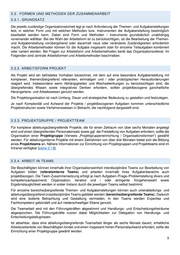 3.3. FORMEN UND METHODEN DER ZUSAMMENARBEIT 3.3.1. GRUNDSATZ Die jeweils zuständige Organisationseinheit legt je nach Anforderung der Themen- und Aufgabenstellungen fest, in welcher Form und mit welchen Methoden bzw. Instrumenten die Aufgabenstellung bestmöglich bearbeitet werden kann. Dabei sind Form und Methoden / Instrumente grundsätzlich unabhängig voneinander wählbar. Bei der Wahl der Arbeitsform ist zu berücksichtigen, ob die Bearbeitung der Themen- und Aufgabenstellung vorübergehend oder dauerhaft neue oder veränderte Zuständigkeiten erforderlich macht. Die Arbeitsmethoden können für die Aufgabe insgesamt oder für einzelne Teilaufgaben kombiniert oder variiert werden. Bei Fragen zur Arbeitsform und Arbeitsmethoden berät das Organisationsreferat. Im Folgenden sind zentrale Arbeitsformen und Arbeitsmethoden beschrieben. 3.3.2. ARBEITSFORM PROJEKT Als Projekt wird ein befristetes Vorhaben bezeichnet, mit dem auf eine besondere Aufgabenstellung mit komplexen, themenübergreifend relevanten, einmaligen und / oder prototypischen Herausforderungen reagiert wird. Insbesondere wenn Abhängigkeiten und Wechselwirkungen zu berücksichtigen sind, die übergreifendes Wissen sowie integratives Denken erfordern, sollten projektbezogene ganzheitliche Herangehens- und Arbeitsweisen genutzt werden. Die Projektorganisation ist nach Umfang, Dauer und strategischer Bedeutung zu gestalten und festzulegen. Je nach Komplexität und Aufwand der Projekte / projektbezogenen Aufgaben kommen unterschiedliche Projektstrukturen sowie Verfahrensweisen in Betracht, die nachfolgend dargestellt sind. 3.3.3. PROJEKTGRUPPE / PROJEKTTEAM Für komplexe abteilungsübergreifende Projekte, die für einen Zeitraum von über sechs Monaten angelegt sind und einen übergreifenden Personaleinsatz sowie ggf. die Freistellung von Aufgaben erfordern, sollte die Organisation einer Projektgruppe (Verweis „Projektgruppeneinrichtung / Organisationsformen“) gewählt werden. Für abteilungsinterne Projekte mit einem Zeitrahmen von über drei Monaten bietet sich die Bildung eines Projektteams an. Nähere Informationen zur Einrichtung von Projektgruppen und Projektteams sind im Intranet verfügbar [siehe Z I 8]. 3.3.4. ARBEIT IN TEAMS Die Beschäftigten können innerhalb ihrer Organisationseinheit interdisziplinäre Teams zur Bearbeitung von Aufgaben bilden (referatsinterne Teams) und arbeiten innerhalb ihres Aufgabenbereichs auch projektbezogen. Die Team-Zusammensetzung erfolgt je nach Aufgaben-/Frage-/Problemstellung divers und kompetenzaufspannend. Organisation, iterative und / oder stringente Vorgehenswahl sowie Ergebnistauglichkeit werden in erster Instanz durch die jeweiligen Teams selbst bestimmt. Für einzelne bereichsübergreifende Themen- und Aufgabenstellungen können auch unterabteilungs- und abteilungsübergreifend crossdisziplinäre Teams gebildet werden (bereichsübergreifende Teams). Dadurch wird eine isolierte Betrachtung und Gestaltung vermieden. In den Teams werden Expertise und Fachkompetenz gebündelt und auf niederschwelliger Ebene genutzt. Die Teamarbeit wird mit den Führungskräften abgestimmt und Handlungs- und Entscheidungsfreiräume abgesprochen. Die Führungskräfte nutzen dabei Möglichkeiten zur Delegation von Handlungs- und Entscheidungsbefugnissen. Ist absehbar, dass eine abteilungsübergreifende Teamarbeit länger als sechs Monate dauert, erhebliche Arbeitszeitanteile von Beschäftigten bindet und einen insgesamt hohen Personalaufwand erfordert, sollte die Einrichtung einer Projektgruppe gewählt werden. 8