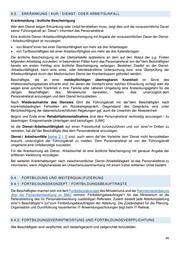 9.3. ERKRANKUNG / KUR / DIENST- ODER ARBEITSUNFALL Krankmeldung / ärztliche Bescheinigung Wer dem Dienst wegen Erkrankung oder Unfall fernbleiben muss, zeigt dies und die voraussichtliche Dauer seiner Führungskraft an. Diese*r informiert das Personalreferat. Eine ärztliche Dienst-/Arbeitsunfähigkeitsbescheinigung mit Angabe der voraussichtlichen Dauer der Dienst- / Arbeitsunfähigkeit ist vorzulegen von Beamt*innen bei einer Dienstunfähigkeit von mehr als drei Arbeitstagen von Tarifbeschäftigten bei einer Arbeitsunfähigkeit von mehr als drei Kalendertagen Die ärztliche Bescheinigung ist der Gleitzeitstelle spätestens an dem auf den Ablauf der o.g. Fristen folgenden Arbeitstag zuzuleiten. In besonderen Fällen kann das Personalreferat von der*dem Beschäftigten bereits am ersten Fehltag eine ärztliche Bescheinigung verlangen. Bestehen Zweifel an der Dienst- /Arbeitsunfähigkeit, kann eine amts- oder betriebsärztliche Untersuchung bzw. eine Überprüfung der Arbeitsunfähigkeit durch den Medizinischen Dienst der Krankenkassen gefordert werden. Beschäftigte, die an einer meldepflichtigen übertragbaren Krankheit im Sinne des Infektionsschutzgesetzes erkrankt sind, bei denen der Verdacht einer solchen Erkrankung vorliegt oder die wegen einer solchen Krankheit in ihrer Familie oder näheren Umgebung eine Ansteckungsgefahr für die übrigen Beschäftigten des Ministeriums darstellen, haben dies unverzüglich dem Personalreferat anzuzeigen und dem Dienst fernzubleiben. Nach Wiederaufnahme des Dienstes führt die Führungskraft mit der*dem Beschäftigten nach krankheitsbedingten Fehlzeiten ein Rückkehrgespräch. Gegenstand des Gesprächs sind unter Berücksichtigung der datenschutzrechtlichen Regelungen ggf. auch die Ursachen der Abwesenheit. Beginn und Ende einer Rehabilitationsmaßnahme sind dem Personalreferat rechtzeitig anzuzeigen / zu beantragen. Entsprechende Unterlagen sind beizufügen. [LINK] Ist die Dienst-/Arbeitsunfähigkeit auf einen Freizeitunfall zurückzuführen und von einer*m Dritten zu vertreten, hat die*der Beschäftigte dies dem Personalreferat anzuzeigen. Dienst-/ Arbeitsunfälle [siehe Z I 1] sind, auch wenn die*der Verletzte dem Dienst nicht fernzubleiben braucht, unverzüglich der Führungskraft zu melden. Dem Personalreferat ist von der Führungskraft umgehend eine Unfallanzeige zuzuleiten. Für die Anerkennung als Dienst- /Arbeitsunfall ist eine ärztliche Bescheinigung mit genauer Angabe der erlittenen Verletzung vorzulegen. Bei weiteren Krankmeldungen nach zwischenzeitlicher Dienst-/Arbeitsfähigkeit ist das Personalreferat zu informieren, wenn möglicherweise ein Ursachenzusammenhang mit einem früher erlittenen Unfall besteht. 9.4. FORTBILDUNG UND WEITERQUALIFIZIERUNG 9.4.1. FORTBILDUNGSKONZEPT / FORTBILDUNGSBEAUFTRAGTE Die Beschäftigten machen sich mit dem Fortbildungskonzept des Ministeriums und der Rahmenvereinbarung über die Personalentwicklung im BMU vertraut. Fortbildungsbeauftragte*r für das Ministerium ist die Referatsleitung des für Personalentwicklung zuständigen Referates. Zudem bestellt jede Abteilungsleitung eine*n Beschäftigte*n zur*zum Fortbildungsbeauftragten der Abteilung. Die Zuständigkeit für die Planung, Organisation und Durchführung hausinterner IT-Anwendungsschulungen liegt beim IT-Referat. 9.4.2. FORTBILDUNGSVERANTWORTUNG UND FORTBILDUNGSVERPFLICHTUNG Alle Beschäftigten sind verpflichtet, sich bedarfsgerecht und zielgerichtet fortzubilden. 46