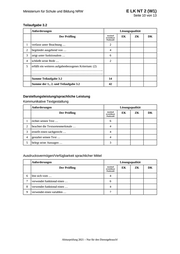 Ministerium für Schule und Bildung NRW E LK NT 2 (W1) Seite 11 von 13 Sprachrichtigkeit Anforderungen Lösungsqualität Der Prüfling maximal erreichbare EK ZK DK Punktzahl beachtet die Normen … 10 Wortschatz 9 11 Grammatik 8 12 Orthografie 4 Summe Darstellungsleistung/sprachliche Leistung 63 Summe insgesamt für Klausurteil A 105 Klausurteil B: Teilleistungen – Kriterien (Sprachmittlung) Teilaufgabe 4 Anforderungen Lösungsqualität Der Prüfling maximal erreichbare EK ZK DK Punktzahl verfasst eine situations- … 18 Summe 4. Teilaufgabe 18 Darstellungsleistung/sprachliche Leistung Kommunikative Textgestaltung Anforderungen Lösungsqualität Der Prüfling maximal erreichbare EK ZK DK Punktzahl 1 richtet seinen Text … 2 berücksichtigt den situativen … 3 beachtet die Textsortenmerkmale … 9 4 erstellt einen sachgerecht … 5 gestaltet seinen Text … Abiturprüfung 2021 – Nur für den Dienstgebrauch!