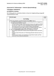 Ministerium für Schule und Bildung NRW E LK NT 1 (GG) Seite 10 von 13 Teilaufgabe 3.2 Anforderungen Lösungsqualität Der Prüfling maximal erreichbare EK ZK DK Punktzahl 1 verfasst ein situations- … 2 2 erläutert ausgehend von … 8 3 schließt sein debate … 4 4 erfüllt ein weiteres aufgabenbezogenes Kriterium: (2) …………………………………………………………….. …………………………………………………………….. Summe Teilaufgabe 3.2 14 Summe der 1., 2. und Teilaufgabe 3.2 42 Darstellungsleistung/sprachliche Leistung Kommunikative Textgestaltung Anforderungen Lösungsqualität Der Prüfling maximal erreichbare EK ZK DK Punktzahl 1 richtet seinen Text … 6 2 beachtet die Textsortenmerkmale … 4 3 erstellt einen sachgerecht … 4 4 gestaltet seinen Text … 4 5 belegt seine Aussagen … 3 Ausdrucksvermögen/Verfügbarkeit sprachlicher Mittel Anforderungen Lösungsqualität Der Prüfling maximal erreichbare EK ZK DK Punktzahl 6 löst sich vom … 4 7 verwendet funktional einen … 6 8 verwendet funktional einen … 4 9 verwendet einen variablen … 7 Abiturprüfung 2021 – Nur für den Dienstgebrauch!