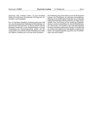 Drucksache 14/12037 Bayerischer Landtag · 14. Wahlperiode Seite 3 nanzierung nicht verändert werden. An dem bewährten Die Einführung eines neuen Fördersystems für Kindergärten Schlüssel von 40 (Staat): 40 (Gemeinde): 20 (Träger bzw. El- bedeutet eine Überführung der bisherigen Personalkosten- ternanteil) wird festgehalten. förderung in die kindbezogene Förderung. Davon unberührt bleiben die Förderungen durch die Bezirke als Träger der So- Das in Erprobung befindliche Finanzierungskonzept sieht zialhilfe. Eine Verweisung auf eine unzulässige Doppelför- zwar eine (kostenneutrale) Staffelung der Elternbeiträge ent- derung ist insofern unzutreffend, als sich die Förderbereiche, sprechend der Nutzungszeiten vor, dies hat jedoch nach den wie schon bisher, zwar berühren, aber nicht überschneiden. bisherigen Ergebnissen an den Modellstandorten zu keiner Ein damit begründeter Rückzug der Bezirke ist deshalb nicht Verringerung der Finanzierungsanteile geführt. Die Bu- zu erwarten und aufgrund des individuellen Anspruchs des chungszahlen sind vielmehr in beiden Modellregionen stabil, Kindes auf Eingliederungshilfe gegenüber dem Sozialhilfe- im Landkreis Landsberg am Lech sogar leicht ansteigend. träger auch nicht möglich.