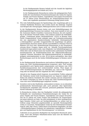 BREMISCHE BÜRGERSCHAFT Drucksache 20/1336 Landtag (zu Drs. 20/1268) 20. Wahlperiode 08.02.22 Mitteilung des Senats vom 8. Februar 2022 Umgang mit den Folgen von Spielsucht und vorbeugenden Maßnahmen Die Fraktion der CDU hat unter Drucksache 20/1268 eine Kleine Anfrage zu obigem Thema an den Senat gerichtet. Der Senat beantwortet die vorgenannte Kleine Anfrage wie folgt: 1. Wie viele legale Spielhallen, Wettbüros oder ähnliche Angebote mit wie vielen Beschäftigten gibt es im Land Bremen in welchen Stadtteilen (auf- geteilt nach Bremen und Bremerhaven)? Im Land Bremen gibt es 167 Spielhallen – 133 in der Stadtgemeinde Bre- men und 34 in der Stadtgemeinde Bremerhaven sowie 42 Wettvermitt- lungsstellen – 37 in der Stadtgemeinde Bremen und fünf in der Stadtge- meinde Bremerhaven. Folgende Aufteilung nach Stadtteilen ergibt sich zum 15. Januar 2022: Stadtgemeinde Bremen Spielhallen Wettvermittlungsstellen Stadtteil Blumenthal 7 1 Burglesum 6 - Findorff 3 1 Gröpelingen 14 4 Hemelingen 14 7 Horn-Lehe 2 - Huchting 6 2 Mitte 22 6 Neustadt 12 4 Obervieland 7 2 Osterholz 10 2 Östliche Vorstadt 1 1 Vahr 11 1 Vegesack 9 2 Walle 5 3 Woltmershausen 4 1 Gesamt 133 37 –1–