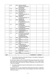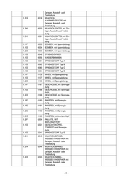 Zerleger, Ausstoß- und Treibladung 1.3 G 0019 MUNITION, AUGENREIZSTOFF, mit Zerleger, Ausstoß- und Treibladung 1.2 K 0020 MUNITION, GIFTIG, mit Zer- leger, Ausstoß- und Treibla- dung 1.3 K 0021 MUNITION, GIFTIG, mit Zer- leger, Ausstoß- und Treibla- dung 1.1 F 0033 BOMBEN, mit Sprengladung 1.1 D 0034 BOMBEN, mit Sprengladung 1.2 D 0035 BOMBEN, mit Sprengladung 1.1 D 0048 SPRENGKÖRPER 1.1 D 0056 WASSERBOMBEN 1.1 D 0081 SPRENGSTOFF Typ A 1.1 D 0082 SPRENGSTOFF Typ B 1.1 D 0083 SPRENGSTOFF Typ C 1.1 D 0084 SPRENGSTOFF Typ D 1.1 F 0136 MINEN, mit Sprengladung 1.1 D 0137 MINEN, mit Sprengladung 1.2 D 0138 MINEN, mit Sprengladung 1.1 F 0167 GESCHOSSE, mit Sprengla- dung 1.1 D 0168 GESCHOSSE, mit Sprengla- dung 1.2 D 0169 GESCHOSSE, mit Sprengla- dung 1.1 F 0180 RAKETEN, mit Sprengla- dung 1.1 E 0181 RAKETEN, mit Sprengla- dung 1.2 E 0182 RAKETEN, mit Sprengla- dung 1.3 C 0183 RAKETEN, mit inertem Kopf 1.2 F 0204 FALLOTE, MIT EXPLOSIVSTOFF 1.1 D 0221 GEFECHTSKÖPFE, TORPEDO, mit Sprengla- dung 1.1 D 0241 SPRENGSTOFF Typ E 1.2 H 0243 MUNITION, BRAND, WEISSER PHOSPHOR mit Zerleger, Ausstoß- oder Treibladung 1.3 H 0244 MUNITION, BRAND, WEISSER PHOSPHOR mit Zerleger, Ausstoß- oder Treibladung 1.2 H 0245 MUNITION, NEBEL, WEISSER PHOSPHOR mit Zerleger, Ausstoß- oder Treibladung –3–