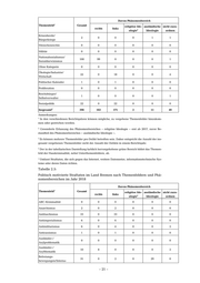 Davon Phänomenbereich 1 Themenfeld Gesamt religiöse Ide- ausländische nicht zuzu- rechts links ologie2 Ideologie ordnen Proliferation 0 0 0 0 0 0 Reichsbürger/ 0 0 0 0 0 0 Selbstverwalter Sozialpolitik 1 0 0 0 0 1 Insgesamt3 386 152 134 0 57 43 Anmerkungen: 1 In den verschiedenen Berichtsjahren können mögliche, zu vergebene Themenfelder hinzukom- men oder gestrichen werden. 2 Gesonderte Erfassung des Phänomenbereiches − religiöse Ideologie − erst ab 2017, zuvor Be- standteil des Phänomenbereiches − ausländische Ideologie −. 3 Es können mehrere Themenfelder pro Delikt betroffen sein. Daher entspricht die Anzahl der ins- gesamt vergebenen Themenfelder nicht der Anzahl der Delikte in einem Berichtsjahr. 4 Der in der tabellarischen Darstellung farblich hervorgehobene grüne Bereich bildet das Themen- feld der Hasskriminalität, nebst Unterthemenfeldern, ab. ⁵ Umfasst Straftaten, die sich gegen das Internet, weitere Datennetze, informationstechnische Sys- teme oder deren Daten richten. Tabelle 2.9: Politisch motivierte Straftaten im Land Bremen nach Themenfeldern und Phä- nomenbereichen im Jahr 2014 Davon Phänomenbereich 1 Themenfeld Gesamt religiöse Ide- ausländische nicht zuzu- rechts links ologie2 Ideologie ordnen ABC-Kriminalität 0 0 0 0 0 0 Anarchismus 6 0 6 0 0 0 Antifaschismus 30 0 30 0 0 0 Antiimperialismus 0 0 0 0 0 0 Antimilitarismus 0 0 0 0 0 0 Antirassismus 0 0 0 0 0 0 Ausländer-/ 0 0 0 0 0 0 Asylproblematik Ausländer-/ 5 0 4 0 0 1 Asylthematik Befreiungs- bewegungen/Interna- 23 0 0 0 23 0 tionale Solidarität Cybercrime⁵ 0 0 0 0 0 0 Hasskriminalität 4 44 26 0 0 8 10 Unterthemenfelder Hass- kriminalität Antisemitisch 15 8 0 0 2 5 Antiziganistisch 0 0 0 0 0 0 Ausländerfeindlich 0 0 0 0 0 0 – 29 –