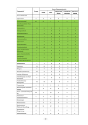 Davon Phänomenbereich Themenfeld1 Gesamt religiöse Ide- ausländische nicht zuzu- rechts links ologie2 Ideologie ordnen Militär 0 0 0 0 0 0 Nationalsozialismus/ 106 102 2 0 0 2 Sozialdarwinismus Ohne Kategorie 0 0 0 0 0 0 Ökologie/Industrie/ 5 0 5 0 0 0 Wirtschaft Politischer Kalender 3 1 2 0 0 0 Proliferation 0 0 0 0 0 0 Reichsbürger/ 4 1 0 0 0 3 Selbstverwalter Sozialpolitik 4 0 4 0 0 0 Insgesamt3 460 194 194 5 39 28 Anmerkungen: 1 In den verschiedenen Berichtsjahren können mögliche, zu vergebene Themenfelder hinzukom- men oder gestrichen werden. 2 Gesonderte Erfassung des Phänomenbereiches − religiöse Ideologie − erst ab 2017, zuvor Be- standteil des Phänomenbereiches − ausländische Ideologie −. 3 Es können mehrere Themenfelder pro Delikt betroffen sein. Daher entspricht die Anzahl der ins- gesamt vergebenen Themenfelder nicht der Anzahl der Delikte in einem Berichtsjahr. 4 Der in der tabellarischen Darstellung farblich hervorgehobene grüne Bereich bildet das Themen- feld der Hasskriminalität, nebst Unterthemenfeldern, ab. ⁵ Umfasst Straftaten, die sich gegen das Internet, weitere Datennetze, informationstechnische Sys- teme oder deren Daten richten. Tabelle 2.6: Politisch motivierte Straftaten im Land Bremen nach Themenfeldern und Phä- nomenbereichen im Jahr 2017 Davon Phänomenbereich 1 Themenfeld Gesamt religiöse Ide- ausländische nicht zuzu- rechts links ologie2 Ideologie ordnen ABC-Kriminalität 0 0 0 0 0 0 Anarchismus 8 0 8 0 0 0 Antifaschismus 22 0 20 0 0 2 Antiimperialismus 4 0 4 0 0 0 Antimilitarismus 3 0 3 0 0 0 Antirassismus 0 0 0 0 0 0 Ausländer-/ 0 0 0 0 0 0 Asylproblematik Ausländer-/ 9 8 1 0 0 0 Asylthematik Befreiungs- bewegungen/Interna- 14 0 0 0 14 0 tionale Solidarität Cybercrime⁵ 0 0 0 0 0 0 – 23 –