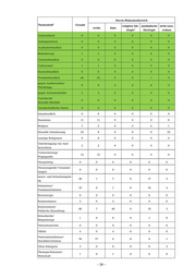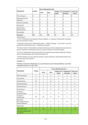 Davon Phänomenbereich Themenfeld1 Gesamt religiöse Ide- ausländische nicht zuzu- rechts links ologie2 Ideologie ordnen Politischer Kalender 0 0 0 0 0 0 Proliferation 0 0 0 0 0 0 Reichsbürger/ 0 0 0 0 0 0 Selbstverwalter Sozialpolitik 6 0 6 0 0 0 Insgesamt3 364 152 103 0 71 38 Anmerkungen: 1 In den verschiedenen Berichtsjahren können mögliche, zu vergebene Themenfelder hinzukom- men oder gestrichen werden. 2 Gesonderte Erfassung des Phänomenbereiches − religiöse Ideologie − erst ab 2017, zuvor Be- standteil des Phänomenbereiches − ausländische Ideologie −. 3 Es können mehrere Themenfelder pro Delikt betroffen sein. Daher entspricht die Anzahl der ins- gesamt vergebenen Themenfelder nicht der Anzahl der Delikte in einem Berichtsjahr. 4 Der in der tabellarischen Darstellung farblich hervorgehobene grüne Bereich bildet das Themen- feld der Hasskriminalität, nebst Unterthemenfeldern, ab. ⁵ Umfasst Straftaten, die sich gegen das Internet, weitere Datennetze, informationstechnische Sys- teme oder deren Daten richten. Tabelle 2.8: Politisch motivierte Straftaten im Land Bremen nach Themenfeldern und Phä- nomenbereichen im Jahr 2015 Davon Phänomenbereich Themenfeld1 Gesamt religiöse Ide- ausländische nicht zuzu- rechts links ologie2 Ideologie ordnen ABC-Kriminalität 0 0 0 0 0 0 Anarchismus 6 0 6 0 0 0 Antifaschismus 24 0 24 0 0 0 Antiimperialismus 6 0 6 0 0 0 Antimilitarismus 0 0 0 0 0 0 Antirassismus 1 0 1 0 0 0 Ausländer-/ 0 0 0 0 0 0 Asylproblematik Ausländer-/ 11 6 4 0 0 1 Asylthematik Befreiungs- bewegungen/Interna- 18 0 0 0 18 0 tionale Solidarität Cybercrime⁵ 0 0 0 0 0 0 Hasskriminalität 4 51 41 1 0 2 7 Unterthemenfelder Hass- kriminalität Antisemitisch 8 8 0 0 0 0 Antiziganistisch 0 0 0 0 0 0 – 27 –