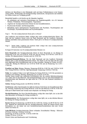 4 Hessischer Landtag · 20. Wahlperiode · Drucksache 20/1307 Groß-Gerau: Die Vitos Klinik Riedstadt unterhält im Bereich der Erwachsenenpsychiatrie drei psychiatrische Institutsambulanzen (Riedstadt, Groß-Gerau und Rüsselsheim). Die Kinder- und Jugendpsychiatrie hat in Riedstadt eine Ambulanz. Hersfeld-Rotenburg: Im Landkreis Hersfeld-Rotenburg gibt es eine Psychiatrische Institutsam- bulanz am Klinikum Bad Hersfeld. Hochtaunuskreis: Im Hochtaunuskreis gibt es eine Psychiatrische Institutsambulanz (Vitos Hochtaunus). Kassel: Das Ludwig-Noll-Krankenhaus übernimmt die Pflichtversorgung für ca. 2/3 der Stadt Kassel, die Vitos Klinik Kurhessen für ca. 1/3 der Stadt Kassel und den gesamten Landkreis Kassel. Das Ludwig-Noll-Krankenhaus hat an zwei Standorten in der Stadt Kassel jeweils eine Psychia- trische Institutsambulanz, die Vitos Klinik Kurhessen hat an drei Standorten jeweils eine Psy- chiatrische Institutsambulanz, davon eine in der Stadt Kassel und zwei im Landkreis Kassel (Bad Emstal und Hofgeismar). Lahn-Dill-Kreis: Im Lahn-Dill-Kreis gibt es eine psychiatrische Institutsambulanz der Vitos Klinik in Herborn mit zwei Dependancen in Wetzlar und Haiger. Limburg/Weilburg: Im Landkreis Limburg-Weilburg gibt es zwei psychiatrische Vitos- Kliniken (Hadamar und Weilmünster) und zusätzlich zwei Ambulanzen mit Tagesklinik (Lim- burg und Weilburg). Eine weitere befindet sich in Bad Camberg im Aufbau. Main-Kinzig-Kreis: Im Main-Kinzig-Kreis gibt es zwei Kliniken jeweils mit psychiatrischen Ambulanzen im Klinikum Hanau und in den Main-Kinzig-Kliniken in Schlüchtern (mit Außen- stelle in Gelnhausen). Main-Taunus-Kreis: Im Main-Taunus-Kreis gibt es zwei psychiatrische Krankenhäuser, die beide eine Psychiatrische Institutsambulanz betreiben. Marburg-Biedenkopf: Im Landkreis Marburg-Biedenkopf gibt es zwei Psychiatrische Ambu- lanzen: Die Psychiatrische Ambulanz an der Klinik für Psychiatrie und Psychotherapie am UKGM und die Psychiatrische Ambulanz an der Vitos Klinik für Psychiatrie und Psychothera- pie. Außerdem gibt es im Landkreis Marburg-Biedenkopf zwei Psychotherapie-Ambulanzen. Odenwaldkreis: Im Odenwaldkreis gibt es eine psychiatrische Institutsambulanz für Erwachse- ne im Zentrum für seelische Gesundheit (ZSG), in Erbach und eine Kinder- und Jugendpsychia- trische Ambulanz in Höchst (Vitos). Offenbach: Eine psychiatrische Institutsambulanz gibt es im Sana-Klinikum. Rheingau-Taunus-Kreis: Im Rheingau-Taunus-Kreis gibt es drei solcher Einrichtungen: Die beiden Institutsambulanzen von Vitos Rheingau in Eltville und Idstein sowie die Institutsambu- lanz des Scivias St. Valentinus-Krankenhauses in Kiedrich. Vogelsbergkreis: Es gibt eine psychiatrische Ambulanz. Werra-Meißner-Kreis: Beim Zentrum für Psychiatrie und Psychotherapie gibt es drei psychia- trische Ambulanzen mit Standorten in Eschwege, Hessisch Lichtenau und Witzenhausen. Wetteraukreis: Im Wetteraukreis gibt es vier psychiatrische Institutsambulanzen. Die Klinik für Psychiatrie und Psychotherapie Friedberg / Gesundheitszentrum in Friedberg, Bad Vilbel, Nidda – Bad Salzhausen und das Capio Mathildenhospital in Büdingen. Wiesbaden: Für die Stadt Wiesbaden sind zwei psychiatrische Krankenhäuser (Psychiatrische Abteilung Helios-HSK und Vitos Eichberg in Eltville), 24 Stunden täglich erreichbar. Vitos Eichberg betreibt drei psychiatrische Institutsambulanzen, die psychiatrische Abteilung Helios- HSK eine. Frage 9. Wie beurteilt die hessische Landesregierung die neue Bundesrichtlinie zur Personalbemessung in psychiatrischen Krankenhäusern? Die neue Richtlinie zur Personalausstattung in Psychiatrie und Psychosomatik, die der Gemein- same Bundesausschuss am 19. September 2019 beschlossen hat, wird voraussichtlich am 1. Ja- nuar 2020 in Kraft treten. Kritisch wird gesehen, dass zukünftig stationsbezogen Nachweise über die Personalausstattung erbracht werden müssen. Dies führt zu einem hohen Verwaltungsaufwand.