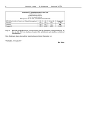 2 Hessischer Landtag · 20. Wahlperiode · Drucksache 20/524 der Teilnehmenden kann je nach Kursart (z.B. allgemeiner Integrationskurs oder Alphabetisie- rungskurs) sowie der wöchentlich zu absolvierenden Stundenanzahl des jeweiligen Kurses be- reits vor dem Jahr 2018 erfolgt sein. Im Regelfall findet ein Großteil der Testungen eines Jahres mit Teilnehmenden statt, die in einem der Vorjahre in den Integrationskurs eingetreten sind. (Im Folgenden gilt dies auch für die Antworten zu den Fragen 4; 6; 8). Anzahl der DTZ-Testteilnehmenden im Jahr 2018 Mit Wohnort in Hessen Nach Geschlecht Abfragestand: 31.03.2019; konsolidierte Integrationskursgeschäftsstatistik alle Staatsangeh. Anzahl der DTZ Testteilnehmenden davon B1-Niveau erreicht absolut prozentual Männlich 10.832 5.515 50,9% Weiblich 8.824 5.562 63,0% Insgesamt 19.656 11.077 56,4% Davon Nur 5 Staatsangeh. Anzahl der DTZ Testteilnehmenden davon B1-Niveau erreicht absolut prozentual Männlich 6.756 3.124 46,2% Weiblich 2.805 1.380 49,2% Insgesamt 9.561 4.504 47,1% *Fünf Staatsangehörigkeiten mit guter Bleibeperspektive: Eritrea, Irak, Iran, Somalia, Syrien Frage 3. Wie hoch ist der Prozentsatz sowie die absolute Zahl, der in Hessen lebenden nach §60 a Abs. 2 Satz 3 AufenthG geduldeten Migranten, die im Jahr 2018 an einem Integrationskurs teilgenom- men haben (Bitte aufschlüsseln nach männlich und weiblich.)? Auf Basis der bestehenden Datenlage ist es dem Bundesamt lediglich möglich, die im Jahr 2018 neu in den Integrationskurs eingetretenen Teilnehmenden auszuweisen. Anzahl der neuen Kursteilnehmenden § 60 Abs. 2 Satz 3 in Prozent von neue (Hessen, 2018) 2018 Kursteilnehmende 2018 Gesamt Bescheinigung über die Ausset- Männlich 32 0,33% zung der Abschiebung (Duldung) Weiblich 16 0,14% nach § 60a Abs. 2 Satz 3 AufenthG Summe 48 0,23% Alle Kursarten, ohne Kurswiederholende Abfragestand: 31.03.2019; konsolidierte Integrationskursgeschäftsstatistik Frage 4. Wie hoch ist der Prozentsatz innerhalb der unter Frage 3) genannten Teilnehmer, die am Ende des Integrationskurses das Sprachniveau B1 bestanden haben (Bitte aufschlüsseln nach männlich und weiblich.)? Hierzu wird auf die Beantwortung der Frage 2 verwiesen. Anzahl der DTZ-Testteilnehmenden im Jahr 2018 mit Wohnort in Hessen mit Bescheinigung über die Aussetzung der Abschiebung (Duldung) nach § 60a Abs.2 AufenthG nach Geschlecht Abfragestand: 31.03.2019; konsolidierte Integrationskursgeschäftsstatistik Anzahl der DTZ davon B1-Niveau erreicht Testteilnehmenden absolut prozentual Männlich 10 * ** Weiblich * * ** Insgesamt * * ** *Es wurden jeweils weniger als zehn Personen erfasst. Aus Gründen des Datenschutzes wird die genaue Anzahl nicht ausgewiesen. **Auf Grund der geringen Grundgesamtheit erfolgt keine prozentuale Angabe.