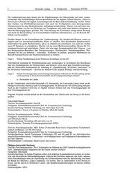 2 Hessischer Landtag · 20. Wahlperiode · Drucksache 20/5764 Die Landesregierung legte bereits mit der Gigabitstrategie den Schwerpunkt auf einen voraus- schauenden und zukunftsfähigen Infrastrukturausbau für die digitale Zukunft Hessens. Damit ist Hessen gut vorbereitet für digitale Anwendungen auf 5G-Basis und die Einführung von 6G. Neben dem Ausbau von Mobilfunkbasisstationen wird auch die Verfügbarkeit eines leistungsstarken Glasfasernetzes für eine flächendeckende Anbindung berücksichtigt. Ebenso wird auf einen kon- struktiven Dialog vor Ort zur Förderung der Transparenz und somit einer höheren Akzeptanz in allen Bevölkerungsgruppen geachtet. Die Unterstützung der Kommunen erfolgt durch Beratung und durch die Bereitstellung von wissenschaftlich fundierten Informationen, u.a. im Bereich Mo- bilfunk und Gesundheit. Darüber hinaus ist ein Kernanliegen der Landesregierung, die Attraktivität Hessens weiter zu steigern und ein investitionsfreundliches Klima zu schaffen. Den bestehenden Standortvorteil, insbesondere für große Rechenzentren, gilt es zu erhalten und auszubauen, wie auch den Ausbau neuer IT-Standorte zu ermöglichen. Hierbei soll ein neues Rechenzentrumsbüro Hessen die Un- ternehmen beraten und unterstützen. Damit wird eine enge Zusammenarbeit aller Akteure – von den Rechenzentren-Betreibern über Energieversorger, Netzbetreiber, Stadtplanungsbüros, Wis- senschaft bis hin zur Industrie – unterstützt. Zusätzlich ist geplant, geeignete Maßnahmen im Bereich Energieeffizienz der Hardwarestrukturen zu fördern. Frage 2. Welche Fachabteilungen in den Ministerien beschäftigen sich mit 6G? Federführend zuständig für Mobilfunkausbau und -technologien ist im Rahmen des Beschlusses über die Zuständigkeiten der Ministerinnen und Minister sowie nach dem Geschäftsverteilungs- plan der Hessischen Staatskanzlei die Abteilung D „Digitalisierung, Wirtschaft, Innovation“ in der Hessischen Staatskanzlei – Bereich der Ministerin für Digitale Strategie und Entwicklung. Frage 5. Welche Forschungsprojekte und Forschungsschwerpunkte im Bereich der 6G-Entwicklung sind der Landesregierung an hessischen Hochschulen und Forschungseinrichtungen bekannt? a) Hochschulen des Landes An der Technischen Universität Darmstadt (TU Darmstadt), der Universität Kassel sowie an der Philipps-Universität Marburg sind Forschungsprojekte im Bereich der 6G-Entwicklung bekannt. Auch an der Frankfurt University of Applied Sciences befasst sich eine Forschungsgruppe mit dem Forschungsthema 6G. Folgende Projekte werden aktuell an den Hochschulen zum Thema oder mit Bezug zu 6G durch- geführt: Universität Kassel Titel des Forschungsprojekts: FastAR Fachgebiet: Kommunikationstechnik/Chair for Communication Technology Kurzbeschreibung: Schnelle Erkennung von Aktivitäten durch KI Drittmittelgeber: House of Logistics & Mobility (HOLM) GmbH. Titel des Forschungsprojekts: NORA Fachgebiet: Kommunikationstechnik/Chair for Communication Technology und Öffentliches Recht Kurzbeschreibung: Gestaltung (KI und Jura) von Al Drittmittelgeber: Deutsche Forschungsgemeinschaft (DFG). Titel des Forschungsprojekts: VRU Schutz (Vulnerable Road Users [Ungeschützte Verkehrsteil- nehmer im Rahmen von NCAP-Tests]) Fachgebiet: Kommunikationstechnik/Chair for Communication Technology Kurzbeschreibung: Durch Vernetzung Unfallschutz (5G und 6G und KI zur Aktivitätserken- nung/Kollisionsberechnung, Unfallschutz von Fußgängerinnen und Fußgängern/Fahrradfahrerin- nen und -fahrern) Drittmittelgeber: Continental, Smart Kassel und weitere. Philipps-Universität Marburg Titel des Forschungsprojekts: Zwei Teilprojekte im Rahmen des DFG Sonderforschungsbereichs 1053 „Multimechanism Adaptation für the Future Internet (MAKI)“ Fachgebiet: Informatik Kurzbeschreibung: In beiden Projekten sollen sich drahtlose Kommunikationssysteme an techni- sche und ökonomische Rahmenbedingungen während des Betriebes anpassen, um bspw. automa- tisiert Entscheidungen über die Platzierung von Softwarediensten oder die Speicherung von Daten am Rande des Internets („Edge Computing“) zu treffen. Dies ist insbesondere in 6G-Netzen re- levant, um die durch sie definierten Latenz- und Bandbreitenanforderungen im Internet erfüllen zu können. Drittmittelgeber: DFG.