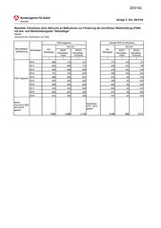 20/3142 FbW insgesamt darunter FbW mit Abschluss darunter darunter Beschäftigten- 821 821 Berichtsjahr 82101 82102 82101 82102 qualifizierung Altenpflege Altenpflege Altenpflege - Altenpflege - Altenpflege - Altenpflege - Helfer Fachkraft Helfer Fachkraft 1 2 3 4 5 6 2010 655 568 82 136 100 36 2011 552 483 65 161 112 49 2012 536 375 161 237 94 143 darunter FbW 2013 502 349 149 219 82 137 ohne Beschäftigtenqu 2014 493 385 108 123 34 89 alifizierung, d.h. 2015 501 406 93 117 28 89 aus Leistungsbezug 2016 411 233 177 183 24 159 2017 320 193 125 135 18 117 2018 220 139 75 87 17 70 2019 213 136 65 62 7 55 Aktive Abschlüsse Teilnehmer fBW ohne ohne Beschäftigen- Beschäftigen- qualifizierung, qualifizierung, 4.403 3.267 1.100 1.460 516 944 d.h. aus d.h. aus Leistungs- Leistungsbezug bezug 2010 - 2010 - 2019 2019 gesamt gesamt Aktive Abschlüsse Teilnehmer fBw Beschäftigten- Beschäftigten- 3.259 1.122 2.018 qualifizierung 1.894 124 1.767 qualifizierung 2010 - 2019 2010 -2019 gesamt gesamt Erstellungsdatum: 08.07.2020, Statistik-Service Südwest, Auftragsnummer 303878, ergänzt durch HSMI Lesehilfe: Die Datenauszug bezieht sich auf Teilnehmer, die die fbW beendet haben (kein Abbruch). Bei der jährlichen Erfassung (Berichtsjahr) werden in der Statistik nicht die Anfänger im jeweiligen Berichtszeitraum ausgewiesen, sondern der Bestand der aktiven Teilnehmer im Berichtsjahr. Diese können im Berichtsjahr, aber auch in Vorjahren begonnen haben. Bei der jährlichen Erfassung der Abschlüsse ermittelt, wieviele Teilnehmer im Bezugsjahr die fbW erfolgreich abgeschlossen haben. Daraus folgt, dass man - bezogen auf das Bezugsjahr - die Tabelle nicht so lesen darf: X Anfänger im Jahr Y, davon z Abschlüsse!
