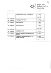 / i", Hochschule «> Geisenheim Universitt4 Hochschufüerwaltung Kanzlerin 'l "' """'- "" """"""""""""' "" 1-2/w=1 3-5 / w=2 6-12 / vv=1 WS 2019/2020 Institut für Phytomedizin 1-2 / w=2 Ws 201 9/2020 Institut für Rebenzüchtung 1-2 / m=3 / w=1 WS 2!)19/2020 , Vize Forschung <1/m=1 1-2 / m=1 WS 2019/2020 Studierendenbüro <1/m=1 3-5 / m=1 / w=1 6-12 / m=1 WS 201 9/2020 International Office 3-5 / m=1 WS 20-19/2020 Sprachenzentrum 3-5/ w=1 WS 2019/2020 jnstitut für allgemeinen und ökologischen 1-2 / m=1 Weinbau WS-2019/2-020 Professur für Zierpflanzenforschung und 1-2 / w=2 urbanen Gartenbau 3-5 / m=3 / w=5 6-12 / w=2