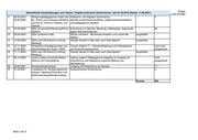 Anlage 1 zu KA 20/5352 Akkreditierte Veranstaltungen zum Thema "religiös motivierter Extremismus" seit 01.03.2018 (Stand: 11.06.2021) Lfd. Zeitraum Anbieter Thema Veranstaltungs Teilnahmen Nr. status hess. LK 1 06.03.2018 Religionspädagogisches Institut der Hat Religion etwas mit Gewalt zu tun? 11 Ev. Kirche von Kurhessen-Waldeck und der Ev. Kirche in Hessen, und Nassau 2 03.11.2018 - Hessischer Rundfunk, Netzwerk hr-iNFO Funkkolleg Religion – Macht - Politik 41 25.05.2019 Rundfunk und Schule 3 18.02.2019 - Käthe-Kollwitz-Schule, Berufliche Pädagogische Konferenz und Pädagogischer Tag zum Thema 70 19.02.2019 Schulen "Vielfalt ist unsere Stärke": 4 27.03.2019 SSA LK und Stadt Offenbach Demokratielernen in der Einwanderungsgesellschaft 7 5 29.04.2019 Landesamt für Verfassungsschutz Merkmale und Erscheinungsformen des politischen 19 Hessen, Abteilung Prävention und Extremismus phänomenübergreifende Analyse 6 06.09.2019 - Religionspädagogisches Institut der Politische Dimensionen religiöser Bildung nicht 08.09.2019 Ev. Kirche von Kurhessen-Waldeck GwR-Jahrestagung 2019 in Kooperation mit der Ev. Akademie ausgewertet und der Ev. Kirche in Hessen, und Frankfurt und dem RPI Frankfurt Nassau 7 19.09.2019 ACDL Arbeitsgemeinschaft Extremismus in Deutschland 26 Christlich Demokratischer Lehrer in Hessen 8 04.11.2019 SSA Landkreis Die Würde des Menschen ist (un)antastbar? Wie begegne ich 8 Bergstraße/Odenwaldkreis Rechtspopulismus, Alltagsrassismus, gruppenbezogene Menschenfeindlichkeit im Schulalltag? 9 18.11.2019 SSA LK Hersfeld-Rotenburg/Werra- Rechtsextremismus und Salafismus im Spannungsfeld von 23 Meißner Schule und Unterricht 10 09.12.2019 - SSA LK Hersfeld-Rotenburg/Werra- Intervisionsgruppe "Migration und Integration" ausgefallen 15.06.2020 Meißner Seite 1 von 2