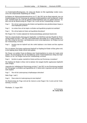 2 Hessischer Landtag · 20. Wahlperiode · Drucksache 20/5699 von Sonderimpfstoffkontingenten, die seitens des Bundes im Mai angekündigt worden waren, sowie eine entsprechende Empfehlung der STIKO. Im Rahmen der Ministerpräsidentenkonferenz am 27. Mai 2021 hat der Bund mitgeteilt, dass ein Sonderkontingent für die Umsetzung der geplanten Schülerimpfaktion nicht bereitgestellt werden kann. Deshalb konnte das Land die geplante Schülerimpfaktion nicht wie geplant umsetzen. Zu- dem wird auf die Beantwortung der Fragen 2 bis 4 sowie auf die Vorbemerkung verwiesen. Frage 2. Wie will die Landesregierung allen Kindern und Jugendlichen einen gleichberechtigten Zugang zu einem Impfangebot gewähren? Frage 3. An welchen Orten soll das Impfen von Kindern und Jugendlichen perspektivisch stattfinden? Frage 4. Wer soll das Impfen der Kinder und Jugendlichen übernehmen? Die Fragen 2 bis 4 werden aufgrund des Sachzusammenhangs gemeinsam beantwortet. Nach der entsprechenden Zulassung des Impfstoffes von BioNTech und dem Wegfall der Priori- sierung können seit dem 7. Juni 2021 auch Schülerinnen und Schüler ab 12 Jahren geimpft wer- den. Dies erfolgt bei den Haus- und Kinderärzten sowie in den Impfzentren. Im Übrigen wird auf die Vorbemerkung verwiesen. Frage 5. Inwiefern kann der Impfstoff auch über mobile Impfteams in den Schulen und Kitas angeboten werden? Da es in nächster Zeit keinen zugelassenen Impfstoff zur Impfung der Kinder in Kitas geben wird, ist die Impfung dieser Kinder derzeit nicht geplant. Der Einsatz von mobilen Teams im Rahmen einer Sonderimpfaktion ist seitens des Landes nicht geplant. Die Entscheidung über die Durchführung solcher Sonderimpfaktionen obliegt den Impf- zentren vor Ort. Im Übrigen wird auf die Vorbemerkung verwiesen. Frage 6. Inwiefern ist geplant, innerhalb der Schulen und Kitas eine Priorisierung vorzunehmen? Die Impfung der Kinder in Kitas wird in nächster Zeit mangels hierfür zugelassenen Impfstoffs nicht erfolgen. Angesichts der Aufhebung der Priorisierung seit dem 7. Juni 2021 ist eine Priorisierung innerhalb der Altersgruppe von Kindern und Jugendlichen ab 12 Jahren nicht vorgesehen und auch rechtlich nicht möglich. Frage 7. Wen will die Landesregierung in Impfkampagne einbeziehen? Siehe Frage 1 und 2. Frage 8. Wann rechnet die Landesregierung mit einem Impfstart? Zur Beantwortung der Frage wird auf die Antwort zu den Fragen 2 bis 4 sowie auf die Vorbe- merkung verwiesen. Wiesbaden, 12. August 2021 In Vertretung: Dr. Stefan Heck