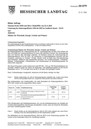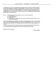 2 Hessischer Landtag · 20. Wahlperiode · Drucksache 20/1579 Im Koalitionsvertrag der die Landesregierung tragenden Parteien ist für die laufende Legislatur- periode eine Steigerung der jährlichen Straßenbaumittel von derzeit 120 Mio. € auf 170 Mio. € im Jahr 2024 vorgesehen. Vor diesem Hintergrund wird zurzeit an einer Fortschreibung der Sa- nierungsoffensive bis zum Jahr 2025 gearbeitet. In wieweit im Landkreis Kassel weitere Stre- ckenabschnitte in den Jahren 2020 bis 2022 im Zuge dieser Fortschreibung Berücksichtigung finden können, bleibt abzuwarten Frage 3. Welche Straßen aus der Sanierungsoffensive 2016 - 2022 sind bis Ende 2019 a) in einem schlechten b) in einem sehr schlechten c) in einem guten d) in einem sehr guten Zustand (bitte hierzu auch die einzelnen prozentualen Anteile vom Ge- samtstreckennetz angeben)? Da die Zustandserfassung des gesamten hessischen Landesstraßennetzes alle vier Jahre erfolgt und die letzte Straßenzustandserfassung im Jahr 2016 stattgefunden hat, gibt es für das Jahr 2019 keine Einzelauswertung. Die Zustandserfassung aus dem Jahr 2016 kann eingesehen wer- den unter: https://wirtschaft.hessen.de/verkehr/strassensanierung/zustandserfassung-der-landesstrassen Die turnusgemäß nächste Zustandserfassung findet im laufenden Jahr 2020 statt. Wiesbaden, 14. Januar 2020 Tarek Al-Wazir