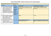 Kleine Anfrage 20/3286 - Externes IT-Personal in der Landesverwaltung Behörde: Hessisches Ministerium für Wirtschaft, Energie, Verkehr und Wohnen Nr. Frage Antwort IT-Kräfte 2019 IT-Kräfte 2020 (bis 30.06.2020) 1. Wie viele externe IT-Mitarbeiter wurden in den Jahren IT-Support 2 VZÄ 2 VZÄ 2019 und 2020 in der Staatskanzlei, den hessischen (allgemein) Ministerien und den nachgeordneten Behörden beschäftigt? (bitte aufschlüsseln nach Behörden und, IT-Projekte / / wenn möglich, Projekten und Tätigkeitsbereichen) (bitte ggf. Projekte benennen und Zahl der Mitarbeitenden angeben) 2. Welche finanziellen Ausgaben hat das Land Hessen in 230.152 € brutto 109.376 € brutto den Jahren 2019 und 2020 für externes IT-Personal getätigt? (bitte aufschlüsseln nach Behörden) 4. Welche Dauer haben Verträge mit externem IT-Personal durchschnittliche Anzahl der Verlängerungen (im durchschnittlich und wie oft werden diese durchschnittlich Vertragsdauer Durchschnitt) verlängert? 12 Monate 1 36 / 53