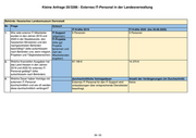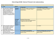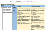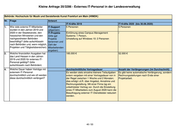 Kleine Anfrage 20/3286 - Externes IT-Personal in der Landesverwaltung Behörde: Hessen Mobil Straßen- und Verkehrsmanagement Nr. Frage Antwort IT-Kräfte 2019 IT-Kräfte 2020 (bis 30.06.2020) 1. Wie viele externe IT-Mitarbeiter wurden in den Jahren IT-Support 0,3 VZÄ (Pflege und Entwicklung 0,3 VZÄ (Pflege und Entwicklung 2019 und 2020 in der Staatskanzlei, den hessischen (allgemein) UNIX-Umgebung und Oracle-DB) UNIX-Umgebung und Oracle-DB) Ministerien und den nachgeordneten Behörden beschäftigt? (bitte aufschlüsseln nach Behörden und, IT-Projekte 1,5 VZÄ (Pflege und 1,5 VZÄ (Pflege und Entwicklung wenn möglich, Projekten und Tätigkeitsbereichen) (bitte ggf. Entwicklung der der Straßeninformationsbank Projekte Straßeninformationsbank Hessen Hessen auf Basis der bundes- benennen und auf Basis der bundes- einheitlichen Standards ASB und Zahl der einheitlichen Standards ASB und OKSTRA) Mitarbeitenden OKSTRA) angeben) 0,7 VZÄ (Pflege und Entwicklung 0,7 VZÄ (Pflege und Entwicklung der Fachanwendungen auf Basis der Fachanwendungen auf Basis IBM Domino) IBM Domino) 2. Welche finanziellen Ausgaben hat das Land Hessen in 440.000 € brutto 220.000 € brutto den Jahren 2019 und 2020 für externes IT-Personal getätigt? (bitte aufschlüsseln nach Behörden) 4. Welche Dauer haben Verträge mit externem IT-Personal durchschnittliche Anzahl der Verlängerungen (im durchschnittlich und wie oft werden diese durchschnittlich Vertragsdauer Durchschnitt) verlängert? 12 Monate (Mindestlaufzeit des 3 Rahmenvertrages) 37 / 53