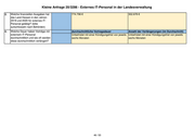 Kleine Anfrage 20/3286 - Externes IT-Personal in der Landesverwaltung 2. Welche finanziellen Ausgaben hat 774.796 € 302.678 € das Land Hessen in den Jahren 2019 und 2020 für externes IT- Personal getätigt? (bitte aufschlüsseln nach Behörden) 4. Welche Dauer haben Verträge mit durchschnittliche Vertragsdauer Anzahl der Verlängerungen (im Durchschnitt) externem IT-Personal Unbefristet mit einer Kündigungsfrist von jeweils Unbefristet mit einer Kündigungsfrist von jeweils durchschnittlich und wie oft werden sechs Monaten sechs Monaten diese durchschnittlich verlängert? 46 / 53