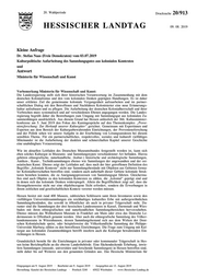 2 Hessischer Landtag · 20. Wahlperiode · Drucksache 20/913 Wissenschaft und Kunst prüft derzeit, wie ermittelt werden kann, in welchem Umfang Kultur- güter und Objekte aus kolonialen Kontexten in hessischen Kulturgut bewahrenden Einrichtungen (museal und universitär) vorhanden sind. Im Folgenden werden die Fragen daher ausschließlich mit Bezug auf die staatlichen Einrichtungen des Mandanten „Historisches Erbe“ beantwortet. Diese Vorbemerkung vorangestellt, beantworte ich die Kleine Anfrage wie folgt: Frage 1. Welchen Stellenwert misst die hessische Landesregierung der kulturpolitischen Aufarbeitung des Sammlungsgutes aus kolonialen Kontexten bei? Die Landesregierung stellt sich der historischen Verantwortung im Zusammenhang mit der deutschen Kolonialgeschichte und ihren Folgen. Das während dieser Zeit geschehene Unrecht, mit seinen zum Teil bis heute bestehenden Nachwirkungen, darf nicht in Vergessenheit geraten. Die Aufarbeitung ist daher ein gesamtgesellschaftliches Thema, das einen breiten Diskurs und eine Erinnerungskultur erfordert. Hier sind unsere Kultur- und Forschungseinrichtungen als Or- te des Bewahrens, Erforschens und Erinnerns in einer besonderen Verantwortung und morali- schen Verpflichtung. Die Auseinandersetzung mit der Kolonialzeit darf keine Ausnahme sein, sondern muss zu einer gesellschaftlichen Bildungsaufgabe werden. Das Land erkennt die Bedeutung der Aufarbeitung kolonialer Kontexte an und strebt einen part- nerschaftlichen Austausch mit Herkunftsstaaten und Herkunftsgesellschaften auf Augenhöhe an. Es gilt daher größtmögliche Transparenz und Teilhabe am kulturellen Erbe der Menschheit über Grenzen hinweg zu ermöglichen. Hierfür bildet die Erforschung zur Herkunft von Sammlungs- gut und dessen Erwerbungsumständen die nötige Grundlage. Frage 2. In welcher Art und Weise wird eine diesbezügliche Provenienzforschung unterstützt? Seit diesem Jahr wurde die durch Bund, Länder und Kommunale Spitzenverbände getragene Stiftung „Deutsches Zentrum Kulturgutverluste“ (DZK) um den Fach- und Förderbereich „Kul- tur- und Sammlungsgut aus kolonialen Kontexten“ inhaltlich wesentlich erweitert. Gemäß der aktuellen Richtlinie für die Förderung von Projekten zur Provenienzforschung bei Sammlungs- gut aus kolonialen Kontexten können damit seit dem 1. Januar 2019 öffentliche Kulturgut be- wahrende Einrichtungen Anträge auf Förderung zur systematischen Aufarbeitung ihrer Prove- nienzen sowie zur Grundlagenforschung stellen. Das Land behält sich darüber hinaus vor, weitere Maßnahmen zur Stärkung der Provenienzfor- schung in Hessen zu ergreifen. Frage 3. Welche Maßnahmen zur Aufarbeitung des Sammlungsguts aus kolonialen Kontexten wurden be- reits in die Wege geleitet oder sind angedacht? Für die hessische Landesregierung bilden die „Ersten Eckpunkte zum Umgang mit Sammlungs- gut aus kolonialen Kontexten“, auf die sich Bund, Länder und kommunale Spitzenverbände an- lässlich ihres 10. Kulturpolitischen Spitzengespräches am 13. März 2019 verständigt haben, die Grundlage weiteren Handelns. Hier stehen insbesondere die Dialogbereitschaft sowie die Digita- lisierung von Beständen und Inventaren zum Zwecke der Transparenz und weltweiten Teilhabe an vorderster Stelle. Im Rahmen einer Digitalen Strategie für den Mandanten „Historisches Er- be“ werden daher aktuell Ziele und Handlungsfelder vereinbart, um die Landesmuseen bei der Digitalisierung ihrer Sammlungsbestände nachhaltig zu unterstützen. Darüber hinaus prüft das Land derzeit, wie die Aufarbeitung von Sammlungsgut aus kolonialen Kontexten an den hessischen Landeseinrichtungen ergebnisorientiert umzusetzen ist. Hierzu ge- hören insbesondere die dokumentarische Erfassung, wissenschaftliche Erforschung, ethische Bewertung, angemessene Vermittlung und digitale Veröffentlichung von Objekten aus kolonia- len Kontexten. Ergeben sich im Zuge der Bearbeitung Kriterien für eine Restitution oder liegen Ersuche von Herkunftsstaaten und Herkunftsgesellschaften vor, so wird grundsätzlich die Rück- führung geprüft und im gegebenen Fall zeitnah ermöglicht. Darüber hinaus wird ein intensiver Austausch mit den Herkunftsstaaten und betroffenen Herkunftsgesellschaften angestrebt. Frage 4. Gibt es bereits Kunst- und Kulturgüter in den hessischen Museen und Sammlungen auf diese Be- schreibung zutrifft? (bitte unter Angabe des Ortes und der Art des Sammlungsguts) Frage 5. Welche Maßnahmen wurden auf den Weg gebracht, wenn ein Sammlungsgut festgestellt wurde, welches aus heutiger Sicht nicht rechtmäßig erworben wurde? Die Fragen 4 und 5 werden aufgrund des Sachzusammenhangs gemeinsam beantwortet: