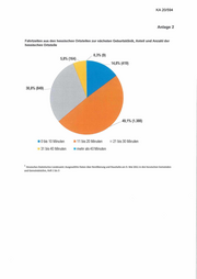 KA 20/594 Anlage 2 Fahrtzeiten aus den hessischen Ortsteilen zur nächsten Geburtsklinik, Anteil und Anzahl der hessischen Ortsteile ■ 0 bis 10 Minuten b 11 bis 20 Minuten 21 bis 30 Minuten 31 bis 40 Minuten ■ mehr als 40 Minuten ' Hessisches Statistisches Landesamt: Ausgewählte Daten über Bevölkerung und Haushalte am 9. Mai 2011 in den hessischen Gemeinden und Gemeindeteilen, Heft 1 bis 3