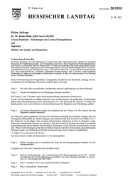 20. Wahlperiode Drucksache 20/5555 HESSISCHER LANDTAG 22. 06. 2021 Kleine Anfrage Dr. Dr. Rainer Rahn (AfD) vom 21.04.2021 Corona-Pandemie – Fälschungen von Corona-Testergebnissen und Antwort Minister für Soziales und Integration Vorbemerkung Fragesteller: Die Presse berichtete, dass die Fälschung von Corona-Tests stark zugenommen habe, seitdem für einreisende Passagiere die Verpflichtung bestehe, ein Testergebnis vorzuweisen. Nach Angaben des Bundesinnenministeri- ums wurden von Dezember 2020 bis Februar 2021 374 Fälle von gefälschten oder falsch ausgestellten Gesund- heitszeugnissen bekannt. Begünstigt werden Fälschungen dadurch, dass die Bescheinigungen keine Sicherheits- merkmale besitzen und sich leicht fälschen lassen. Auch fehlt ein QR-Code, mit dem sich das Ergebnis abrufen lässt. Nach einem Bericht der „Frankfurter Allgemeinen Sonntagszeitung“ vom 11.04.2021 wurden gefälschte Testberichte vor allem von einreisenden Asylbewerbern vorgelegt, da diese bei einem positiven Test Nachteile für ihr Verfahren befürchten. Diese Vorbemerkung des Fragestellers vorangestellt, beantworte ich die Kleine Anfrage im Ein- vernehmen mit dem Minister des Innern und für Sport wie folgt: Frage 1. Wie viele Fälle von gefälschten Test-Berichten sind der Landesregierung aus Hessen bekannt? Frage 2. Welcher Personenkreis ist von Fälschungen besonders betroffen? Die Fragen 1 und 2 werden wegen Sachzusammenhangs gemeinsam beantwortet. Zu der im Pressebericht erwähnten Einreise von Asylbewerbern mit gefälschten Testberichten liegen dem Innenministerium keine Informationen vor. Die Kontrolle der Einreise ist Sache der Bundespolizei, das Asylverfahren wird beim Bundesamt für Migration und Flüchtlinge geführt. Frage 3. Auf welche Merkmale hin werden Test-Ergebnisse bei der Vorlage (z.B. bei Einreise über den Flughafen Frankfurt (überprüft)? Als Nachweis gelten gemäß der Corona-Virus-Einreiseverordnung ein ärztliches Zeugnis oder ein Testergebnis hinsichtlich des Nichtvorliegens einer Infektion mit dem Corona-Virus SARS-CoV-2. Der Nachweis ist auf Papier oder in einem elektronischen Dokument, jeweils in deutscher, engli- scher oder französischer Sprache zu erbringen. Die dem ärztlichen Zeugnis oder dem Testergebnis zugrundeliegende Abstrichnahme darf höchstens 48 Stunden vor der Einreise vorgenommen worden sein. Nähere Anforderungen an die dem ärztlichen Zeugnis oder dem Testergebnis zugrundeliegende Testung werden vom Robert-Koch-Institut im Internet unter dieser Adresse veröffentlicht: https://www.rki.de/covid-19-tests. Auf dieser Basis werden die Kontrollen vor Ort durchgeführt. Frage 4. Welche Vorgaben gibt es hinsichtlich der Form der Test-Bescheinigungen bezüglich der Fäl- schungssicherheit? Vorgaben zur Form des Testnachweises bestehen nicht. Frage 5. Plant die Landesregierung – ggf. in Kooperation mit der Bundesregierung oder der EU – einheitli- che Merkmale für Test-Bescheinigungen einzuführen, um deren Fälschung zumindest zu erschwe- ren (z.B. Verwendung eines QR-Codes)? Frage 6. Falls 5. zutreffend: Wie ist der aktuelle Stand dieser Planungen? Frage 7. Falls 5. unzutreffend: Warum nicht? Eingegangen am 22. Juni 2021 · Bearbeitet am 22. Juni 2021 · Ausgegeben am 24. Juni 2021 Herstellung: Kanzlei des Hessischen Landtags · Postfach 3240 · 65022 Wiesbaden · www.Hessischer-Landtag.de