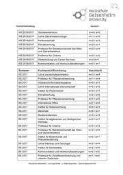 TQC Hochschule -O=- Geisenheim Universiti4 Hochschulverwaltung Kanzlerin Institut für Modellierung und Systemana!yse m=9 / w=4 Kelleiwirtschaft m=2 / w=5 WS 2018/2019 Lehre Landschaftsarchitektur m='l/w=2 l WS 20fö/20j9 Institut für Mikrobiologie und Biochemie m=2 / w=2 l WS 2018/2019 Institut für Obstbau m=l/w=5 WS 2C)18/2019 Kommunikation und Hochschulbeziehungen j m= 1 / w:=0 WS2018/2019 Institut für Phytomedizin m=5 / w=1 WS2018/2019 Institut für Technik m=1/w=0 WS 201 8/20 19 International Office m=1/w=5 WS 2018/2019 Sprachenzentrum m=0 / w=1 WS 2018/2019 Weiterbildung und Career Services m=0/w=:1 WS 2018/2019 Weiterentwicklung Lehre und Studium m=0 / w=1 WS 2018/2019 Hochschulinformationssysteme m=1 / w=0 WS 2018/2019 Professur für Analytik & Technologie m=2 / w=1 pflanzlicher Lebensmittel l Schwerpunkt Getränke WS 2018/2019 Institut für allgemeinen und ökologischen m=4 / w=2 Weinbau WS 2018/2019 Professur für Klimafolgenforschung an m=1/w=0 Sonderkulturen WS 2018/2019 Professur für Pflanzenverwendung m=2 / w=B WS 2018/2019 Professur für Zierpflanzenforschung und m=5 / w=4 urbanen Gartenbau Semester Fachbereich/Einrichtung Geschlecht SS2019 Professur für Betriebswirtschaft des Wein- rn=3 / w=13 und Getränkesektors SS2019 Bibliothek m=7 / w=8 SS2019 Institut für Bodenkunde und m=1 / w=3 Pflanzenernährung SS2019 Institut für Gemüsebau m=5 / w=1 SS2019 Institut für angewandte Ökologie m=2 / w=12 SS2019 Institut für Freiraumentwicklung m=2 / w=-1 SS2ül9 Institut für Frischproduktlogistik m=0 / w=3 Hochschule Geisenheim i Von-Lade-Straße 1 l 65366Geisenheim i www.hs-geisenheim.de