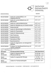 / 2? -0' Hochschule Geisenheim UniVeßitLl ?chschu!verwaltung Kgnzlerin WS 2019/2020 : m=4 / w=5 WS 2019/2020 m=2 / w=1 WS 2019/2020 Institut für Lebensmittelsicherheit m=2 / w=1 l WS 2019/2020 Institut für Modellierung und Systemanalyse m:=6 / w=1 WS 2019/2020 Kellerwirtschaff m=1/w=1 WS 2019/2020 Institut für Mikrobiologie und Biochemie m= 0 / w=4 WS 2019/2020 Institut für Phytomedizin m=0 / w=2 WS 2019/2020 Institut für Rebenzüchtung m=3 / w=1 WS 2019/2020 Vize Forschung m=2/w=0 WS 2019/2020 Studierendenbüro m=3 / w=1 WS 20'l9/2020 International Office m=2 / w=0 WS 2019/2020 Sprachenzentrum m=O / w=1 WS 2019/2020 Institut für allgemeinen und ökologischen Weinbau W WS 2019/2020 Professur für Zierpflanzenforschung und m=3 / w=9 urbanen Gartenbau 11 IMdl n.tl l gNJldgt'Crllt l-qlatil l %JCrs:rul Ilgul IA i %(.) %' %'- 3 a- ?" Semester Fachbereich/Einrichtung Std./Geschlecht Stand: Institut für Bodenkunde und 20-39 Std. / m=1 04.03.2020 Pflanzenernährung 40-59 Std. / m=1 Stand: 04:03.2020 ' Institut für angewandte Ökologie 140-59 sto. i w=1 i < 20 sto. t w=l Stand: Institut für Frischproduktlogistik < 20 Std. / w=1 04.03.2020 Hochschule Geisenheim l Von-Lade-Straße 1 l 65366 Geisenheim l www.hs-geisenheim.de