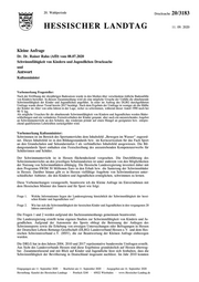 Hessischer Landtag · 20. Wahlperiode · Drucksache 20/3183 3 Frage 10. Welche weiteren Maßnahmen plant die Landesregierung, um die Schwimmfähigkeit der Kinder und Jugendlichen zu verbessern? Um ausreichende Wasserfläche zur Verfügung zu stellen, stellt die Landesregierung mit der Neu- auflage des Schwimmbad-Investitions- und Modernisierungsprogramms „SWIM“ insgesamt 50 Millionen Euro für die Investitionen in Schwimmbäder für die Jahre 2019 bis 2023 zur Verfü- gung. Damit sollen Investitionen gefördert werden, um Schwimmbäder u.a. zu sanieren und zu modernisieren. Moderne und zeitgemäße Schwimmbäder entfalten eine größere Attraktivität für die Bürgerinnen und Bürger, sodass dadurch ein Anreiz geschaffen wird, die Schwimmfähigkeit im privaten Rahmen zu erlernen oder auszubauen. Durch die Förderung von dringend benötigten Investitionsmaßnahmen kann darüber hinaus auch das Schließen von Schwimmbädern verhindert werden. Eine flächendeckende Verfügbarkeit von Schwimmbädern erhöht den Erwerb der Schwimmfähigkeit. Ausreichende Schwimmbadressourcen verbessern auch die Möglichkeiten für schulischen Schwimmunterricht. Wiesbaden, 7. September 2020 Prof. Dr. R. Alexander Lorz
