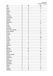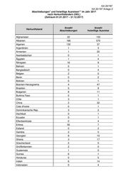 KA 20/197 KA 20/197 Anlage 2 Irak 29 244 Iran 14 93 Israel 0 8 Italien 12 1 Jamaika 4 5 Japan 0 1 Jemen 0 1 Jordanien 1 7 Kambodscha 0 1 Kamerun 2 1 Kanada 0 6 Kasachstan 0 2 Katar 0 16 Kenia 0 1 Kirgistan 0 1 Kolumbien 11 5 Korea, Dem. Volksrep. 0 3 Korea, Republik 0 9 Kosovo 71 137 Kroatien 4 0 Kuba 0 2 Kuwait 9 138 Lettland 2 0 Libanon 1 5 Libyen 0 6 Litauen 13 0 Malaysia 1 3 Mali 0 1 Marokko 67 43 Mauritius 6 1 Mazedonien 42 261 Mexiko 4 1 Moldau, Republik 8 35 Mongolei 1 0 Montenegro 2 10 Nepal 0 5 Neuseeland 1 2 Nicaragua 0 3 Niederlande 3 0 Nigeria 11 7 Oman 0 13 Pakistan 45 78 Palästina 0 1