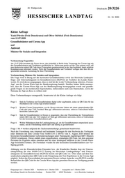 20. Wahlperiode Drucksache 20/3226 HESSISCHER LANDTAG 01. 10. 2020 Kleine Anfrage Yanki Pürsün (Freie Demokraten) und Oliver Stirböck (Freie Demokraten) vom 15.07.2020 Gesundheitsämter und Corona-App und Antwort Minister für Soziales und Integration Vorbemerkung Fragesteller: Am 13.07.2020 berichtete die Presse davon, dass jedenfalls in Berlin keine Vernetzung der Corona-App mit den Gesundheitsämtern und Testlaboren gewährleistet ist. Sofern man positiv auf das Virus getestet wird, soll man idealerweise mittels QR Code dieses Testergebnis pseudonymisiert in der App hochladen, damit mögliche Kontaktpersonen informiert werden. Nicht alle Gesundheitsämter und Testlabore verfügen aber über die ent- sprechende technische Ausstattung für diese Übermittlung Vorbemerkung Minister für Soziales und Integration: Die Frage wird in Bezug auf die hessischen Gesundheitsämter sowie das Hessische Landesprü- fungs- und Untersuchungsamt im Gesundheitswesen (HLPUG) als Testlabor des Landes beant- wortet. Es wird davon ausgegangen, dass es sich bei der in der Vorbemerkung zitierten „Corona- App“ um die Corona-Warn-App der Bundesregierung handelt. Darüber hinaus bleibt anzumer- ken, dass die Corona-Warn-App von der Bundesregierung herausgegeben wurde und grundle- gende Fragen zu den technischen Eigenschaften, insbesondere auch zum Datenschutz, sowie der Nutzung der App an diese zu richten sind. Diese Vorbemerkungen vorangestellt, beantworte ich die Kleine Anfrage wie folgt: Frage 1. Sind die Testlabore und Gesundheitsämter digital sicher angebunden, sodass sie QR-Codes für das Hochladen in die Corona-App erstellen können? Frage 2. Werden Corona-Testergebnisse von für Hessen relevante Labore mit einem entsprechenden QR- Code oder einer TAN versehen? Bitte ggf. differenziert antworten, sofern es Unterschiede beiden hessischen Laboren gibt. Frage 3. Sind die Gesundheitsämter in Hessen so ausgestattet, dass eine Übermittlung des Testergebnisses mittels QR-Code oder TAN möglich ist? Bitte ggf. differenziert antworten, sofern es Unterschiede bei den hessischen Gesundheitsämtern gibt. Frage 4. Welche Maßnahmen plant die Landesregierung ggf. um die Gesundheitsämter entsprechend auszu- statten, um die Übermittlung mittels QR-Code künftig zu gewährleisten? Frage 1 bis 4 werden aufgrund des Sachzusammenhangs gemeinsam beantwortet: Nach der Verordnung zum Anspruch auf bestimmte Testungen für den Nachweis des Vorliegens einer Infektion mit dem Corona-Virus SARS-CoV-2 (RVO) vom 6. August 2020 können die hessischen Gesundheitsämter Laboruntersuchungen unter Nutzung des zugehörigen KBV-Musters OEGD veranlassen. Dieses enthält einen eingedruckten, einmaligen QR-Code, mit dem getestete Personen ihr Ergebnis online einsehen und bei einer bestätigten Infektion in der Corona-Warn- App freischalten können. Die Formulare wurden für alle hessischen Gesundheitsämtern zur Ver- fügung gestellt. Abhängig von der Einsenderin/dem Einsender bzw. der Kundin/des Kunden liegt der Untersu- chungsauftrag für eine SARS-CoV-2 Testung im Hessischen Landesprüfungs- und Untersu- chungsamt im Gesundheitswesen (HLPUG) bereits mit QR-Code vor. Über einen auf dem Ein- sendeschein aufgedruckten QR-Code ist die Einspeisung des Test-Ergebnisses in die Corona-App möglich. Sofern das Einverständnis der getesteten Person vorliegt, kann der vom HLPUG erstellte Befund über den QR-Code für die Corona-Warn-App der getesteten Person zur Verfügung gestellt werden. Eingegangen am 1. Oktober 2020 · Bearbeitet am 1. Oktober 2020 · Ausgegeben am 5. Oktober 2020 Herstellung: Kanzlei des Hessischen Landtags · Postfach 3240 · 65022 Wiesbaden · www.Hessischer-Landtag.de