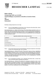20. Wahlperiode Drucksache 20/2169 HESSISCHER LANDTAG 19. 03. 2020 Kleine Anfrage Christoph Degen (SPD) vom 31.01.2020 Weiterbeschäftigung von pensionierten Lehrkräften an hessischen Schulen und Antwort Kultusminister Die Kleine Anfrage beantworte ich wie folgt: Frage 1. Wie viele Tarifbeschäftigte des Landes Hessen, die die Altersgrenze überschritten haben, arbeiten an hessischen Schulen? (Darstellung nach Profession) Zum Statistikstichtag am 1. Oktober 2019 arbeiteten 483 tarifbeschäftigte Lehrkräfte im Alter von 66 und mehr Jahren an öffentlichen Schulen in Hessen. Personen mit kirchlichen Gestellungsver- trägen, nicht unterrichtende Erzieherinnen und Erzieher sowie sozialpädagogische Fachkräfte sind in diesen Zahlen nicht enthalten. Eine Differenzierung nach Qualifikationen kann nachfolgenden Tabelle entnommen werden: Angestellte Lehrkräfte im Alter von 66 oder mehr Jahren Qualifikation Lehrkräfte 66 und älter Erzieherinnen und Erzieher sowie sozialpädagogische Fachkräfte 9 Lehrämter 381 Lehrbefähigungen 19 Unterrichtserlaubnisse 73 kein Eintrag in SAP vorhanden 1 Frage 2. Wie viele dieser Personen sind trotz Überschreitung der Altersgrenze aufgrund des Lehrermangels an Grund- oder Förderschulen tätig? (Vgl. DS 19/5704) Zum Statistikstichtag am 1. Oktober 2019 waren 172 der bei der Antwort zu Frage 1 aufgeführten tarifbeschäftigten Lehrkräfte im Alter von 66 und mehr Jahren an öffentlichen reinen Grundschu- len oder öffentlichen Förderschulen tätig. Die Gründe für die Weiterbeschäftigung nach dem Er- reichen der Altersgrenze werden nicht statistisch erfasst. Personen mit kirchlichen Gestellungs- verträgen, nicht unterrichtende Erzieherinnen und Erzieher sowie sozialpädagogische Fachkräfte sind in diesen Zahlen nicht enthalten. Frage 3. Wie viele Beamtinnen und Beamte, die die Altersgrenze überschritten haben, verrichten ihren Dienst an hessischen Schulen? (Darstellung nach Profession) Zum Statistikstichtag am 1. Oktober 2019 arbeiteten 65 verbeamtete Lehrkräfte im Alter von 66 und mehr Jahren an öffentlichen Schulen. Personen mit kirchlichen Gestellungsverträgen, nicht unterrichtende Erzieherinnen und Erzieher sowie sozialpädagogische Fachkräfte sind in diesen Zahlen nicht enthalten. 64 dieser Personen verfügen über ein Lehramt. Bei der weiteren Person handelt es sich um eine Fachlehrkraft mit einer Lehrbefähigung. Eingegangen am 19. März 2020 · Bearbeitet am 19. März 2020 · Ausgegeben am 25. März 2020 Herstellung: Kanzlei des Hessischen Landtags · Postfach 3240 · 65022 Wiesbaden · www.Hessischer-Landtag.de