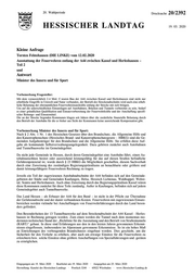 2 Hessischer Landtag · 20. Wahlperiode · Drucksache 20/2392 Zum anderen hat sich das Hessische Ministerium des Innern und für Sport mit dem zuständigen Regierungspräsidium Kassel und der Hessischen Landesfeuerwehrschule Kassel unter Beteiligung der Brandschutzdienststellen des Landkreises Kassel und des Werra-Meißner-Kreises zusammen- gesetzt, um anhand von Unterlagen über einen großen Brand in einem langen Tunnel in der Schweiz die Taktik und die benötigte Ausrüstung für die Feuerwehren bei Tunnelbränden entlang der A44 festzulegen. Die Beschaffung der benötigten Ausrüstungsteile, die die Feuerwehren noch nicht besaßen, wurden durch das Land Hessen mit einem Fördersatz zu 100 % als Projekt geför- dert. Unter Federführung des Regierungspräsidiums Kassel ist nach § 5 Abs. 1 Nr. 2 HBKG zu- sammen mit den Landkreisen der Rahmeneinsatzplan erarbeitet und mit den betroffenen Feuer- wehren abgestimmt worden. Weiter wurde von der Hessischen Landesfeuerwehrschule ein Semi- nar zur Tunnelbrandbekämpfung für die betroffenen Feuerwehren zusammengestellt, das seit dem Jahr 2013 rund dreimal pro Jahr angeboten wird. Die Teilnahme ist für die Feuerwehren kosten- los. Die anfallenden Verdienstausfälle der ehrenamtlichen Feuerwehrangehörigen werden von der Hessischen Landesfeuerwehrschule - und damit vom Land Hessen - übernommen und müssen nicht von den Gemeinden getragen werden. Diese Vorbemerkungen vorangestellt, beantworte ich die Kleine Anfrage wie folgt: Frage 1. Welche Zuschussanträge mit Bezug auf die zusätzlichen Einsatzlagen entlang der A 44 wurden bisher von den betroffenen Kommunen und Landkreisen gestellt? (Bitte nach Kommune, Datum des Zuschussantrags, Zuschussgegenstand, Antragshöhe und Bewilligungshöhe ausweisen.) Sämtliche Feuerwehrfahrzeuge können sowohl für Einsätze auf der Autobahn und in den Tunnel- anlagen als auch für Einsätze im Rahmen des kommunalen Grundschutzes genutzt werden. Hinsichtlich der bewilligten Förderanträge zu Fahrzeugen seit dem Jahr 2012 wird auf die Anlage 1 verwiesen. Förderanträge zum Neubau von Feuerwehrhäusern wurden in diesem Zeitraum nicht gestellt worden. Zusätzlich wurde die Ausrüstung zur Tunnelbrandbekämpfung, die in den Jahren 2013 und 2014 zu 100 % gefördert wurden, wie folgt gefördert: Landkreis Kassel, für den gemeinsamen Abrollbehälter Atemschutz 3.837,96 € bei der Berufsfeuerwehr Kassel Werra-Meißner-Kreis, für den Gerätewagen Atemschutz 61.765,83 € Freiwillige Feuerwehr Kaufungen 55.680,68 € Freiwillige Feuerwehr Helsa 14.714,53 € Freiwillige Feuerwehr Hessisch Lichtenau 18.670,74 € Freiwillige Feuerwehr Waldkappel 18.771,15 € Freiwillige Feuerwehr Wehretal 36.375,83 € Freiwillige Feuerwehr Sontra 18.771,15 € Freiwillige Feuerwehr Herleshausen 18.570,33 € Für das Jahr 2020 sind die in der Anlage 2 ersichtlichen Förderanträge gestellt worden. Da die Anträge noch nicht beschieden sind, können noch keine Angaben zum Fördersatz gemacht wer- den. Zurzeit können nur Angaben zu den zuwendungsfähigen Ausgaben gemacht werden, aus denen unter Anwendung der Fördersätze die maximalen zuwendungsfähigen Förderbeträge er- rechnet werden können. Im Jahr 2020 beschaffte zudem das Land Hessen einen Rauchgasgenerator für Übungen in Tun- nelanlagen im Wert von rund 100.000 €. Dieser ist der bei der Hessischen Landesfeuerwehrschule (HLFS) untergebracht und soll den übenden Feuerwehren zur Verfügung gestellt werden soll. Damit kann die Ausbildung in den Feuerwehren effizienter und realitätsnah gestaltet werden. Frage 2. Mit welchen Zuschüssen können die Kommunen und Landkreisen als Aufgabenträger in den Jahren 2020 bis 2025 rechnen? Im Rahmen des Verfahrens nach der Richtlinie für die Gewährung von Zuwendungen und Sach- leistungen des Landes Hessen zur Förderung des Brandschutzes und der Allgemeinen Hilfe (Brandschutzförderrichtlinie – BSFRL) können die Kommunen und Landkreise Förderanträge auf die Förderung der Beschaffung von Feuerwehrfahrzeugen und des Neubaus von Feuerwehrhäu- sern einreichen. Eine Förderung erfolgt, wenn die Beschaffung bzw. der Bau notwendig sind.