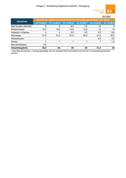 Anlage 3 - Entwicklung hausärztliche Versorgung Summe der hausärztlichen Versorgungsaufträge* zum Stand… Gemeinde 20/1882 31.12.2014 31.12.2015 31.12.2016 31.12.2017 31.12.2018 31.12.2019 Bad Sooden-Allendorf 6 6 6 6 6 6 Witzenhausen 12 10 10 10 10 9 Großalmerode 7 7 7 7 7 7 Hessisch Lichtenau 7 7 7 6 7 6 Berkatal 1 1 1 1 1 1 Eschwege 12,5 12,5 12 12 12 13,75 Meinhard 1 1 1 1 1 Meißner 3 1 1 1 1 1 Ringgau 3 4 3,5 2,5 2,5 2 Waldkappel 3 3 3 3 3 2 Wanfried 5 5 5 5 5,5 5 Wehretal 3 3 3 3 3 3 Herleshausen 2 1 1 1 1 1,5 Sontra 5 5 5 5 3 3 Weißenborn 0,75 Gesamtergebnis 70,5 66,5 65,5 63,5 63 61 * ohne Übernahmepraxen = Versorgungsaufträge, die zum jeweiligen Stand nicht besetzt sind und sich im Ausschreibungsverfahren befinden