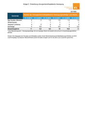 Anlage 3 - Entwicklung psychotherapeutische Versorgung 20/1882 Summe der psychotherapeutischen Versorgungsaufträge* zum Stand… Gemeinde 31.12.2014 31.12.2015 31.12.2016 31.12.2017 31.12.2018 31.12.2019 Bad Sooden-Allendorf 3 3 3 3 4,5 3,5 Witzenhausen 5,7 6,2 6,2 5,5 5 5 Hessisch Lichtenau 1 1 1,5 1,5 1,5 2,5 Eschwege 7,5 8 8 8 7,5 7,5 Herleshausen 0,5 0,5 Sontra 1 1 1 1 1 1 Neu-Eichenberg 0,5 Gesamtergebnis 18,7 19,2 19,7 19 20 20 * ohne Übernahmepraxen = Versorgungsaufträge, die zum jeweiligen Stand nicht besetzt sind und sich im Ausschreibungsverfahren befinden