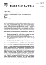 20. Wahlperiode Drucksache 20/3403 HESSISCHER LANDTAG 01. 10. 2020 Kleine Anfrage Dr. Dr. Rainer Rahn (AfD) vom 17.08.2020 Zentralstelle für Medizinwirtschaftsstrafrecht der Generalstaatsanwaltschaft Frankfurt und Antwort Ministerin der Justiz Vorbemerkung Fragesteller: Im Zusammenhang mit dem Verfahren, das am 23.07.2020 zur Inhaftierung des Leiters der Zentralstelle für Medizinwirtschaftsstrafrecht der Generalstaatsanwaltschaft Frankfurt geführt hatte, wurden aus dem Kreis be- troffener Mediziner und Krankenhausträger neue Vorwürfe geäußert. Danach seien teilweise Ermittlungsver- fahren bei geringfügigen Verstößen durch den beschuldigten Oberstaatsanwalt eingeleitet worden, obwohl die Sachverhalte keine hinreichenden Hinweise auf ein strafbares Verhalten zeigten. Ziel sei dabei nicht die Ein- leitung eines nach der StPO vorgesehenen Verfahrens gewesen, sondern ausschließlich die Generierung von Gewinnen durch die Auftragsvergabe an ein Unternehmen, das sich mit der Erstellung von Gutachten im Be- reich medizinischer Abrechnungen beschäftigt. Diese Gutachten seien in vielen Fällen mangelhaft oder un- brauchbar und überteuert gewesen. Die Ermittlungsverfahren endeten dann häufig mit einer Einstellung des Verfahrens, ggf. gegen Zahlung einer Geldauflage im Wege der Einigung zwischen Staatsanwaltschaft und Beschuldigtem. Diese Vorbemerkung des Fragestellers vorangestellt, beantworte ich die Kleine Anfrage wie folgt: Frage 1. Führt die Landesregierung eine Qualitäts- bzw. Plausibilitätskontrolle der Verfahren von Staatsan- waltschaften bzw. Staatsanwälten durch, z.B. durch Vergleich des prozentualen Anteils eingestell- ter Verfahren mit anderen Staatsanwaltschaften (ggf. auch länderübergreifend)? Frage 2. Nimmt die Landesregierung eine Überprüfung der durch einzelne Staatsanwaltschaften bzw. Staats- anwälte verursachten Kosten für externe Gutachten durch, z.B. durch Vergleich der Anzahl von in Auftrag gegebenen Gutachten und der dadurch verursachten mit anderen Staatsanwaltschaften (ggf. auch länderübergreifend)? Frage 3. Falls 1. und/oder 2. zutreffend: welche Ergebnisse zeigte die Überprüfung der durch den beschul- digten Oberstaatsanwalt getroffenen Maßnahmen? Frage 4. Falls 1. und/oder 2. unzutreffend: Plant die Landesregierung zukünftig, eine entsprechende Kon- trolle durchzuführen? Frage 5. Falls 4. zutreffend: welche organisatorischen und/oder gesetzlichen Änderungen sind hierzu erfor- derlich? Die Fragen 1, 2, 3, 4 und 5 werden aufgrund ihres Sachzusammenhangs zusammen beantwortet. Die Anzahl von eingestellten Verfahren der Staatsanwaltschaften werden anlassbezogen – zuletzt im Rahmen der großen Innenrevision bei der Staatsanwaltschaft Darmstadt (Zweigstelle Offen- bach) im November/Dezember 2019 – erhoben und hessenweit verglichen. Die Einstellungszahlen zwischen den verschiedenen Deliktsarten und Kriminalitätsbereichen sind nur äußerst eingeschränkt vergleichbar. Denn die Frage, ob hinsichtlich eines Verfahrens eine Einstellung in Betracht kommt, hängt von zahlreichen Faktoren (wie etwa der Schwere der Tat, dem Vorleben des Täters, insbesondere möglichen Vorstrafen und dem Nachtatverhalten des Tä- ters sowie den Tatfolgen) ab, welche sich je nach Deliktsarten und Kriminalitätsbereichen erheb- lich unterscheiden. So heben sich die von der Zentralstelle für Medizinwirtschaftsstrafrecht bear- beiteten Verfahren von anderen Ermittlungsverfahren etwa dadurch ab, dass die Beschuldigten (Ärzte und Zahnärzte) regelmäßig nicht vorbestraft waren. Viele der Fälle bewegen sich im eher unteren Bereich der deliktsspezifischen Kriminalität. Zum Zeitpunkt der Verfahrensabschlüsse Eingegangen am 1. Oktober 2020 · Bearbeitet am 1. Oktober 2020 · Ausgegeben am 5. Oktober 2020 Herstellung: Kanzlei des Hessischen Landtags · Postfach 3240 · 65022 Wiesbaden · www.Hessischer-Landtag.de