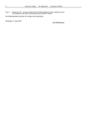 2 Hessischer Landtag · 20. Wahlperiode · Drucksache 20/2563 Frage 4. Wurden die unter 1. genannten Anträge durch den Ministerpräsidenten selbst entschieden oder hat er die Befugnis auf eine andere Stelle übertragen (falls zutreffend: welche)? Der Ministerpräsident hat über die Anträge selbst entschieden. Wiesbaden, 9. April 2020 Axel Wintermeyer