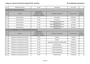 Anlage zur Antwort auf die Kleine Anfrage 20/154 - Korrektur Zur Veröffentlichung bestimmt! Hessisches Ministerium der Finanzen Zeitpunkt des Fort- lfd. Vertragsschlusses Ressort betroffener Fachbereich Kostenvolumen bestand Nr. (19. WP / 20. WP bis in 20. WP einschließlich 14.02.2019) Haushaltsautomation, Prozessoptimierung und 32 Ministerium der Finanzen 19. WP 906.719,00 € Verwaltungssteuerung Haushaltsautomation, Prozessoptimierung und 33 Ministerium der Finanzen 19. WP 1.202.311,65 € Verwaltungssteuerung Landesbeteiligungen 34 Ministerium der Finanzen 19. WP 11.834,55 € Kommunaler Finanzausgleich 35 Ministerium der Finanzen 19. WP 67.414,00 € Energieeinsparung, Enegieeffizientes Bauen, 36 Ministerium der Finanzen 19. WP 18.720,00 € Nachhaltigkeit Energieeinsparung, Enegieeffizientes Bauen, 37 Ministerium der Finanzen 19. WP 25.935,00 € Nachhaltigkeit CO2-neutrale Landesverwaltung 38 Ministerium der Finanzen 19. WP 4.500,00 € Landesbeteiligungen 39 Ministerium der Finanzen 19. WP 72.774,55 € Landesbeteiligungen 40 Ministerium der Finanzen 19. WP 77.790,30 € Kommunaler Finanzausgleich 41 Ministerium der Finanzen 19. WP 53.407,00 € Kommunaler Finanzausgleich 42 Ministerium der Finanzen 19. WP 43.849,00 € Kommunaler Finanzausgleich 43 Ministerium der Finanzen 19. WP 41.550,00 € CO2-neutrale Landesverwaltung 44 Ministerium der Finanzen 19. WP 2.142,00 € Energieeinsparung, Enegieeffizientes Bauen, 45 Ministerium der Finanzen 19. WP 8.330,00 € Nachhaltigkeit Energieeinsparung, Enegieeffizientes Bauen, 46 Ministerium der Finanzen 19. WP 18.817,00 € Nachhaltigkeit Energieeinsparung, Enegieeffizientes Bauen, 47 Ministerium der Finanzen 19. WP 79.730,00 € Nachhaltigkeit Personal 48 Ministerium der Finanzen 19. WP 54.740,00 € 3 von 10