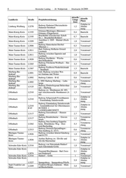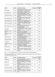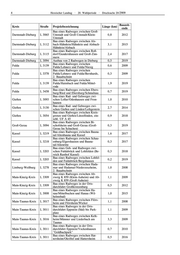 6 Hessischer Landtag · 20. Wahlperiode · Drucksache 20/2909 aktuelle aktuelle Landkreis Straße Projektbezeichnung Länge Phase (km) Radweg Bad Homburg/Dornholzhau- Hochtaunuskreis B 456 1,3 Vorentwurf sen - L 3041 Limburg-Weilburg B8 B 8 Radweg Limburg – Elz 0,8 Vorentwurf Frankfurt (Kreisgrenze Main-Kinzig- Voruntersu- Main-Kinzig-Kreis B8 1,7 Kreis)-Maintal/Bischofsheim (K985) chung Mühlheim/Dietesheim - Ha- Voruntersu- Main-Kinzig-Kreis B 43 2,2 nau/Steinheim chung B 40/B 519 Radweg Flörs- Main-Taunus-Kreis B 40 2,2 Vorentwurf heim/Weilbach - Hofheim/Marxheim Marburg-Bie- B 453 Radweg Dautphetal/Morns- B 453 0,6 Vorentwurf denkopf hausen - Dautphetal/Amelose Radweg Langen - Dreieich/Offenthal Offenbach B 486 (von Koberstädter Str. bis Geißberg 2,5 Vorentwurf Philippseicher Str.) Radwegeverbindung zwischen Rheingau-Taunus- B 42 Rheinradweg und Ortsdurchfahrt Rü- 0,5 Vorentwurf Kreis desheim Jesberg - Zwesten/Oberurff, Rad-/ Schwalm-Eder-Kreis B 3 2,0 Bauentwurf Gehweg Rad-/Gehweg Alsfeld/Leusel - Als- Vogelsbergkreis B 62 1,6 Vorentwurf feld/Angenrod Twistetal Berndorf - Twistetal/ Waldeck-Franken- Planung B 252 Twiste komb. Rad-/Gehweg 1,2 berg fertig 2.Bauabschnitt Karben/Okarben - Wöllstadt/Nieder- Wetteraukreis B3 1,5 Vorentwurf Wöllstadt Wetteraukreis B 275 Ranstadt - Ortenberg/Selters 4,2 Baurecht Wetteraukreis B 455 Rad-/Gehweg Friedberg-Dorheim 1,2 Vorentwurf B 455 Voruntersu- Wetteraukreis Rosbach/Ober-Rosbach - Friedberg 4,1 B 275 chung In Planung befindliche Radwege an Landesstraßen: aktuelle aktuelle Landkreis Straße Projektbezeichnung Länge Phase (km) Bergstraße L3111 Viernheim – Hüttenfeld 5,4 Baurecht Neubau eines Radweges bei Lorsch Bergstraße L3111 0,2 Vorentwurf (Lückenschluss) Bergstraße L3120 Mörlenbach – Bonsweiher 0,9 Bauentwurf Hüttenfeld - Heppenheim (Lücken- Bergstraße L3398 1,2 Bauentwurf schluss) Bergstraße Viernheim - Landesgrenze (Rich- Zeitplan in L3111 tung Lützelsachsen) 0,8 Abstim- mung Querungshilfe R 8 bei Darmstadt Darmstadt-Dieburg L3097 0,2 Bauentwurf (Messel) Radweg von Malchen bis zur B 426 Darmstadt-Dieburg L3100 1,2 Vorentwurf (Eberstadt) - Lückenschluss Darmstadt-Dieburg L3104 Radweg Ober - Ramstadt – Roßdorf 2,2 Vorentwurf Radweg mit Ausbau der Strecke zwischen Groß-Zimmern und Klein- Darmstadt-Dieburg L3115 Zimmern mit Unterführung Katzen- 1,2 Baurecht graben und Unterführung Flutgra- ben bei Groß-Zimmern Radweg von Groß - Umstadt nach Darmstadt-Dieburg L3413 1,7 Vorentwurf Raibach Zeitplan in Darmstadt-Dieburg L3115 Schaafheim - Landesgrenze 1,4 Abstim- mung Zeitplan in Radweg zwischen Kalbach/Heubach Fulda L2304 3,4 Abstim- und Kalbach/Uttrichshausen mung Radweg Fulda - Fulda/Lehnerz Fulda L3079 (Leipziger Straße) inkl. Kreisver- 0,2 Vorentwurf kehrsplatz