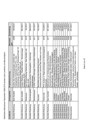 Geförderte Maßnahmen Radverkehr 2008-2019 (sortiert nach Landkreis und Bescheidjahr) Landkreis Antragsteller Projektbezeichnung Bescheid- Zuwendung jahr Groß-Gerau Landkreis Groß- 3. Bauabschnitt; Umsetzung Radverkehrskonzept 2014 81.300 € Gerau Landkreis Groß-Gerau Groß-Gerau Rüsselsheim Geh-/Radwegeneubau am Main mit Steg am Opelhafen 2014 1.505.400 € in Rüsselsheim Groß-Gerau Groß-Gerau L3094, Umbau des Knotenpunktes L3094 / Nordring 2016 22.800 € Groß-Gerau Kelsterbach Radwegeausbau von 5 Abschnitten im Zuge der 2016 525.000 € Regionalparkrouten im Bereich Kelsterbach Groß-Gerau Rüsselsheim L 3040; Ausbau Adam-Opel-Straße zw. Max-von-Laue- 2017 202.500 € Str. und OD-Grenze Groß-Gerau Kreis Groß- 4. Bauabschnitt; Umsetzung Radverkehrskonzept 2018 226.000 € Gerau Landkreis Groß-Gerau Groß-Gerau Rüsselsheim Aktualisierung Fahrradkarte, Öffentlichkeitsarbeit, 2018 8.400 € Aktionen Groß-Gerau Kreis Groß- Autofreier Sonntag "Der Kreis rollt" 2018 10.000 € Gerau Groß-Gerau Kreis Groß- K163; Fahrbahnausbau Ortsdurchfahrt Biebesheim, 1. 2018 256.200 € Gerau Bauabschnitt zwischen Justus-von-Liebig-Str. und Bahnhofstr. Groß-Gerau Kelsterbach Nahmobilitäts-Check und Öffentlichkeitsarbeit 2019 23.400 € Groß-Gerau Kreis Groß- Neues Radverkehrskonzept GG 2019 41.100 € Gerau Groß-Gerau Riedstadt Erneuerung Fahrradabstellanlagen 2019 27.700 € Groß-Gerau Rüsselsheim Radverkehrskonzept Rüsselsheim 2019 37.500 € Groß-Gerau Kreis Groß- Machbarkeitsstudie Korridore RSV Kr.GG 2019 81.200 € Gerau Groß-Gerau Raunheim Raunheim, Give-Aways für Sommerradeln 2019 2.200 € Hersfeld-Rotenburg Rotenburg Ausbau R1/R5 zwischen Rotenburg u. Hof Berthel, 2008 132.400 € 1.Bauabschnitt Baulänge 1,270 km zwischen Martin- Luther-Str. u. Storchensee ca. 800 m u. 2. Bauabschnitt zwischen Hof Dörr u. Hof Berthel ca. 470m Seite 7 von 27