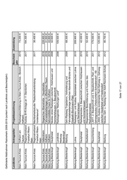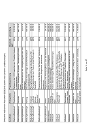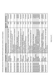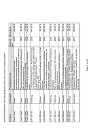 Geförderte Maßnahmen Radverkehr 2008-2019 (sortiert nach Landkreis und Bescheidjahr) Landkreis Antragsteller Projektbezeichnung Bescheid- Zuwendung jahr Limburg-Weilburg Hünfelden K502; Rad- und Gehwegneubau zwischen Mensfelden, 2010 348.200 € Nauheim und Werschau Limburg-Weilburg Runkel R7; Ausbau und Verlegung des R7 in den Bereichen 2011 174.200 € Runkel und Steeden Limburg-Weilburg Hadamar K459; Rad- und Gehwegneubau zwischen 2012 112.800 € Obertiefenbach u. Oberweyer Limburg-Weilburg Hadamar R8; Verlegung des R8 in der Ortsdurchfahrt Hadamar, 2013 408.000 € Elbbachradweg einschl. Beschilderung Anbindung bis Landesgrenze Limburg-Weilburg Landkreis K498; Rad- u. Gehwegneubau zwischen Ahlbach u. 2014 108.900 € Limburg- Faulbach Weilburg Limburg-Weilburg Villmar R7; Ausbau von Teilabschnitten in der Gemarkung 2014 82.500 € Villmar Limburg-Weilburg Elz Erneuerung einer Geh- und Radwegbrücke über den 2016 157.500 € Elbbach im Zusammenhang mit dem R8 in der Mühlstraße in Elz Limburg-Weilburg Löhnberg Neubau Kallenbachtalradweg zwischen Obershausen 2016 332.500 € und Nenderoth Limburg-Weilburg Weilburg Weilburg, Ausbau Kubacher Weg, von Frankfurter 2017 18.500 € Straße bis Kubach Limburg-Weilburg Landkreis Nahmobilitäts-Check 2018 24.500 € Limburg- Weilburg Limburg-Weilburg Limburg an der Radweg Deutsche Einheit, Radstätte Typ 1A 2018 117.600 € Lahn Limburg-Weilburg Weilburg Radweg Deutsche Einheit, Radstätte Typ 1B 2018 26.400 € Limburg-Weilburg Limburg an der Knotenpunktumbau Blumenröder Str. 2019 103.200 € Lahn Limburg-Weilburg Weilburg Weilburg, Neubau Radweg- und Fußgängersteg 2019 1.458.400 € Main-Kinzig-Kreis Main-Kinzig-Kreis K852, Ausbaumaßnahme Geh- und Radweg, Nidderau, 2008 168.400 € ST Erbstadt sowie bis K852 Seite 14 von 27